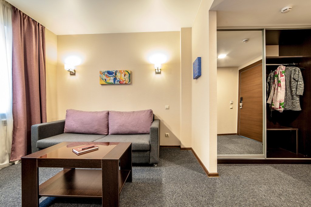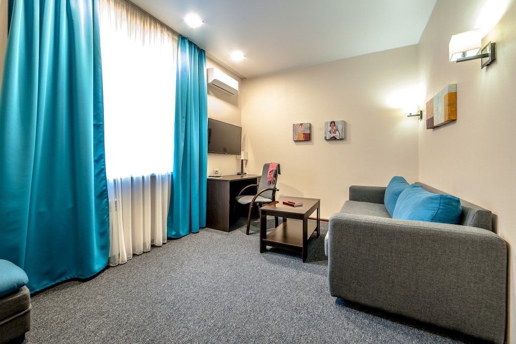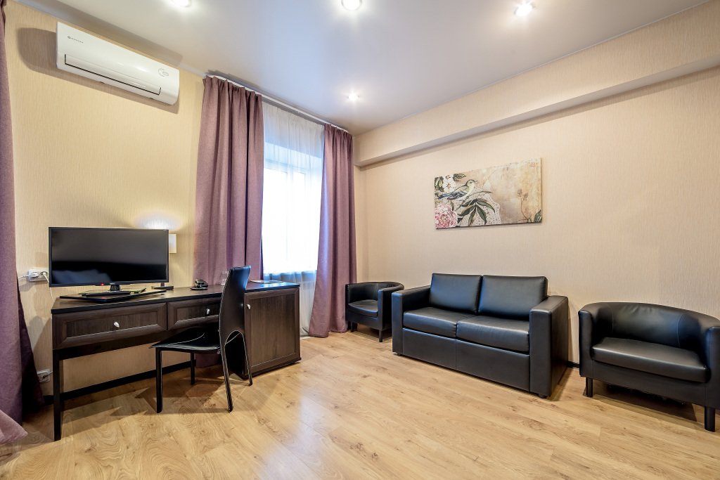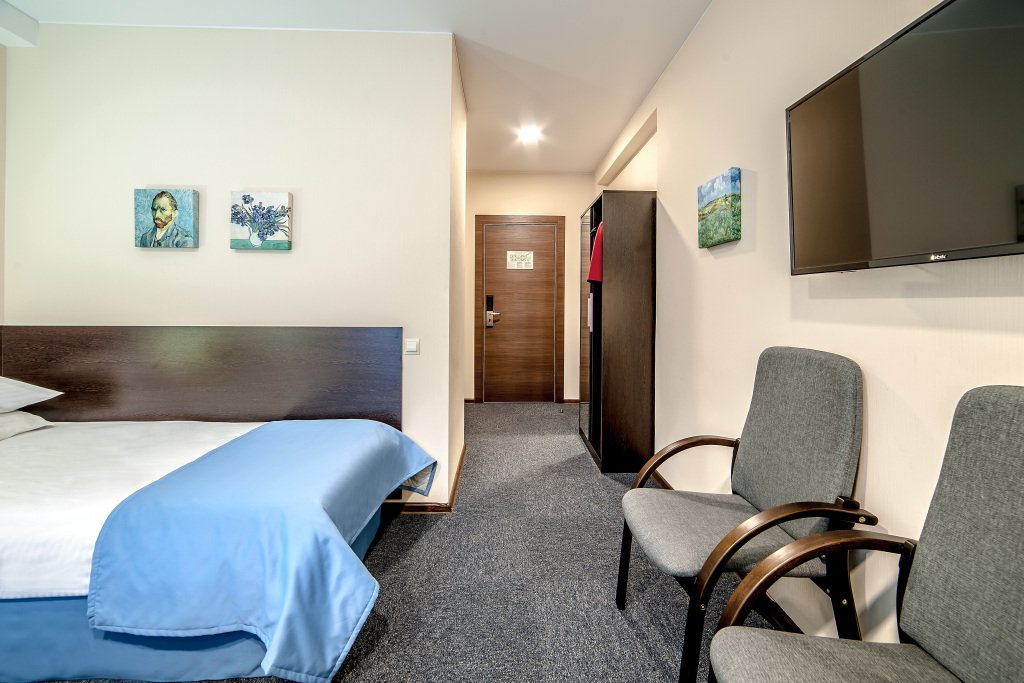 В номере вы найдёте телевизор и мини-бар. Оснащение зависит от выбранной категории номера.