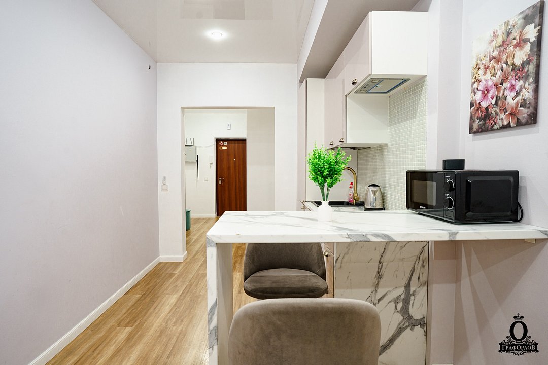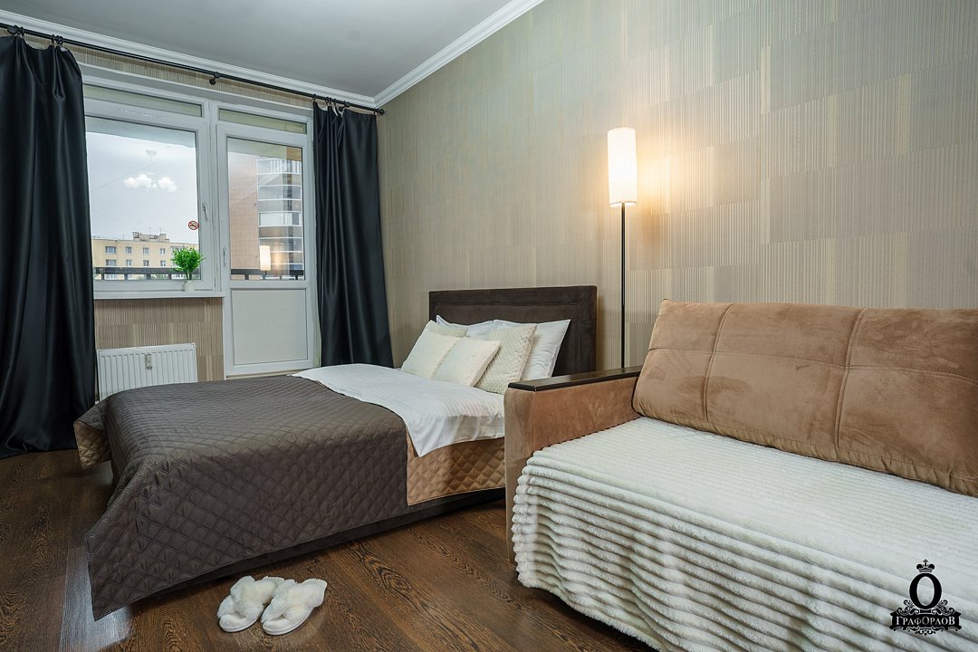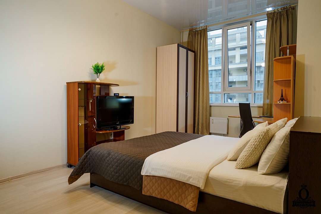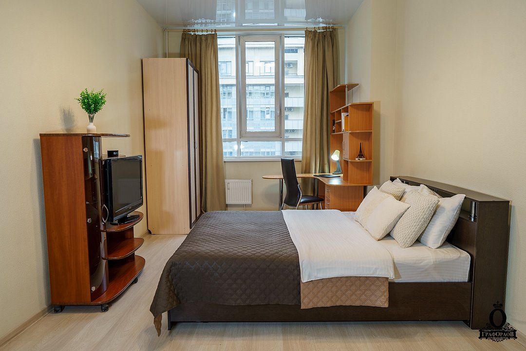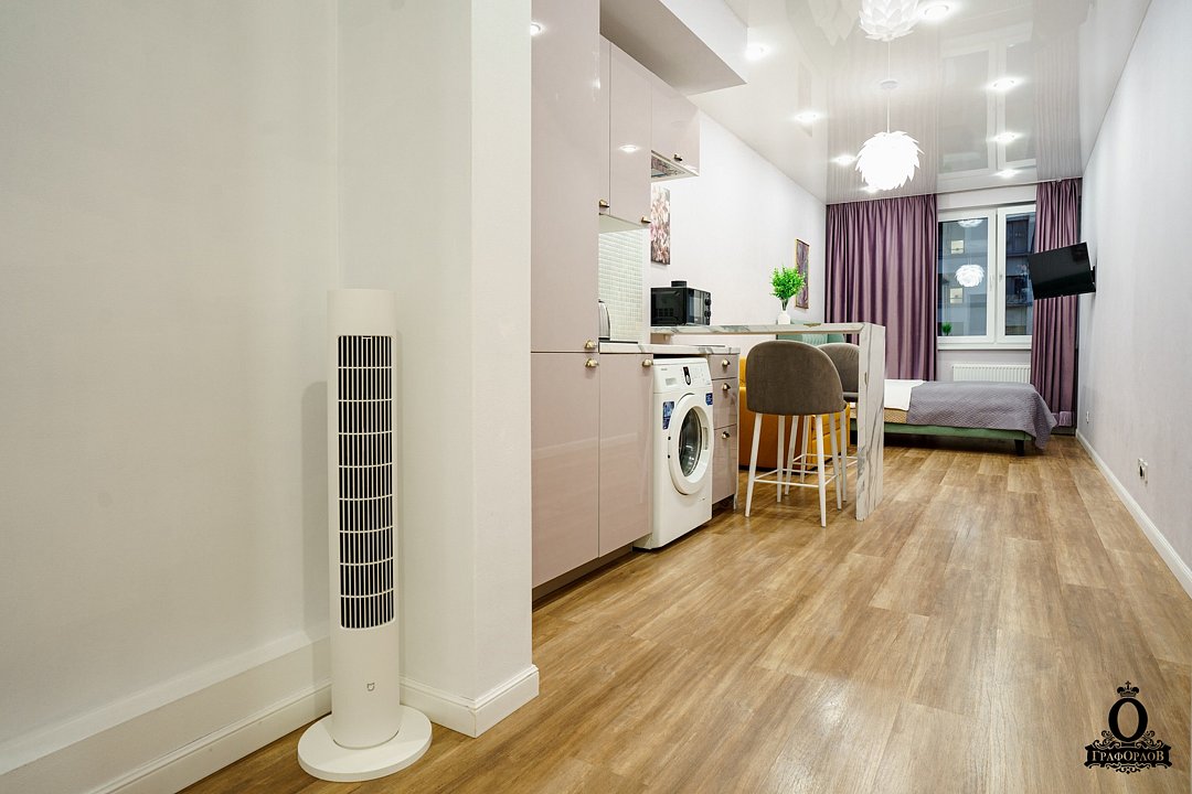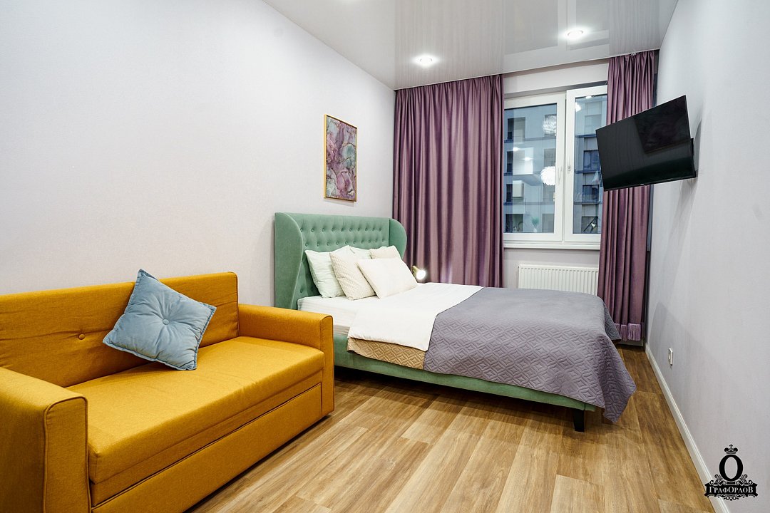 Светлые апартаменты в ЖК «Граф Орлов», расположены на одиннадцатом этаже семнадцатиэтажного дома бизнес-класса, всего три минуты пешком до метро «Московская» — в самом сердце транспортной развязки Санкт-Петербурга.