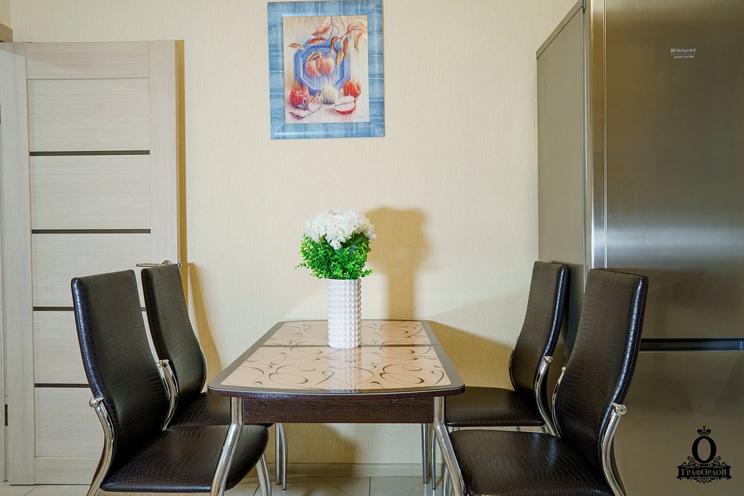 Просторное размещение: шесть спальных мест (2+2+2 — идеально для компании или большой семьи), полноценная кухня с плитой, холодильником, микроволновкой, электрочайником и всей необходимой посудой, стиральная машина, утюг, гладильная доска — чтобы выглядеть безупречно, телевизор и бесплатный Wi-Fi — для работы и развлечений.
