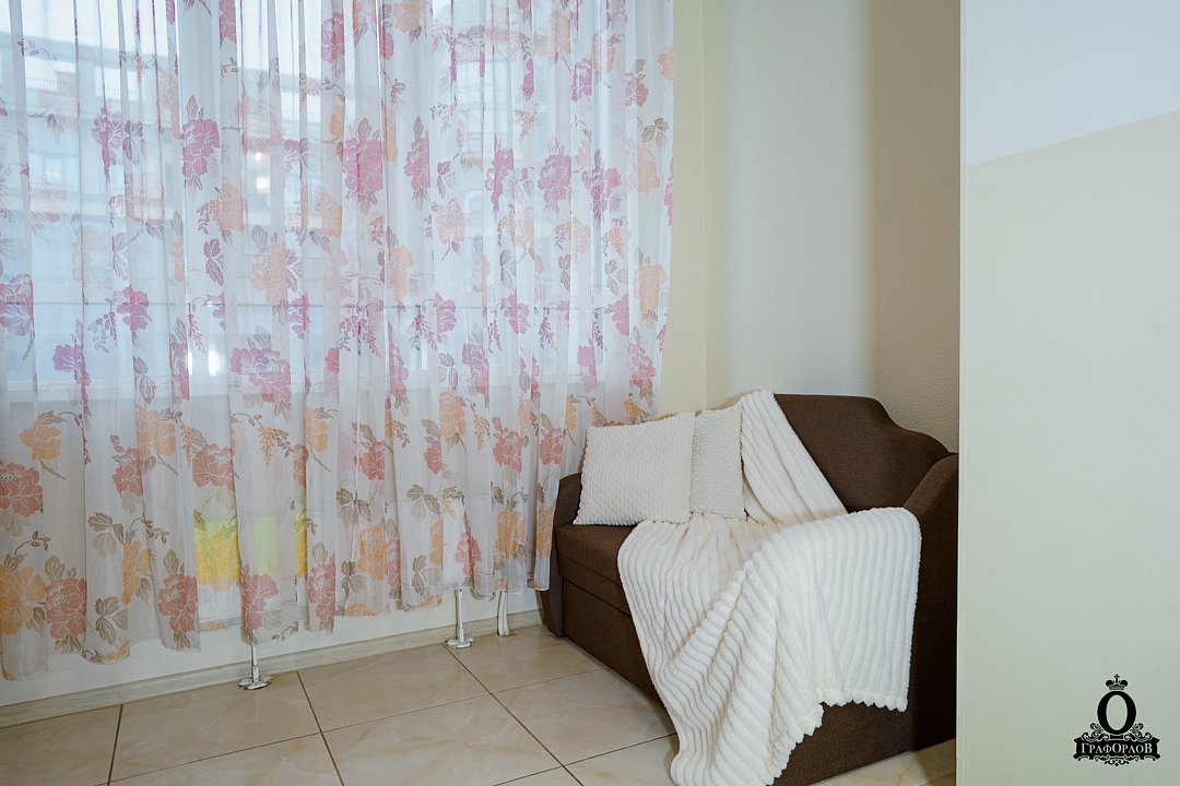 Апарт-отель «Граф Орлов» расположен в современном жилом комплексе бизнес-класса, недалеко от аэропорта и центра города. Рядом — магазины, кафе и детские площадки, что делает его удобным выбором для семей и путешественников с детьми или питомцами. Охраняемая территория и круглосуточная поддержка администраторов обеспечивают безопасность и комфорт на протяжении всего пребывания.
