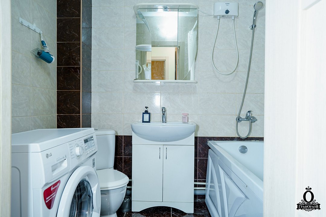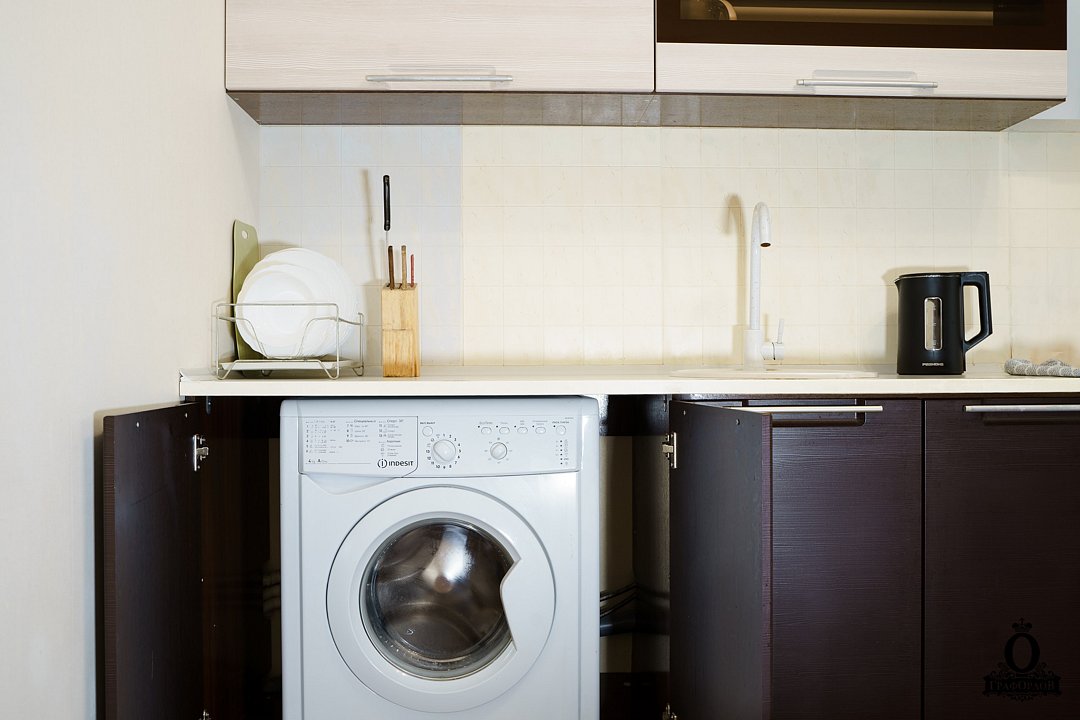 В номере есть все для удобного проживания: двуспальная кровать (два места), полностью оборудованная кухня (холодильник, плита, микроволновка, электрочайник, посуда), стиральная машина, утюг, гладильная доска, сушилка для белья, телевизор и высокоскоростной Wi-Fi.