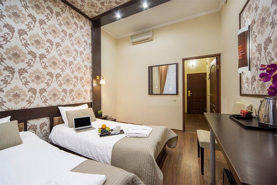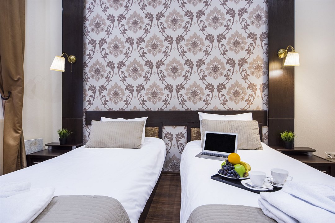 Отель предлагает гостям комфортабельные номера с двумя раздельными или одной большой кроватью на выбор гостя. Каждый номер отеля полностью оснащен современной техникой и удобной мебелью — кондиционером, мини-баром, ванной комнатой, телевизором, феном, бесплатным высокоскоростным интернетом wi-fi, а также включенным в стоимость проживания континентальным завтраком, который подается с 8:00 до 10:00.