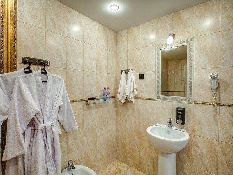 В номерах имеется кондиционер, диван, мини-бар, телевизор. Из окон открывается вид на новый стадион «Зенит Арена».