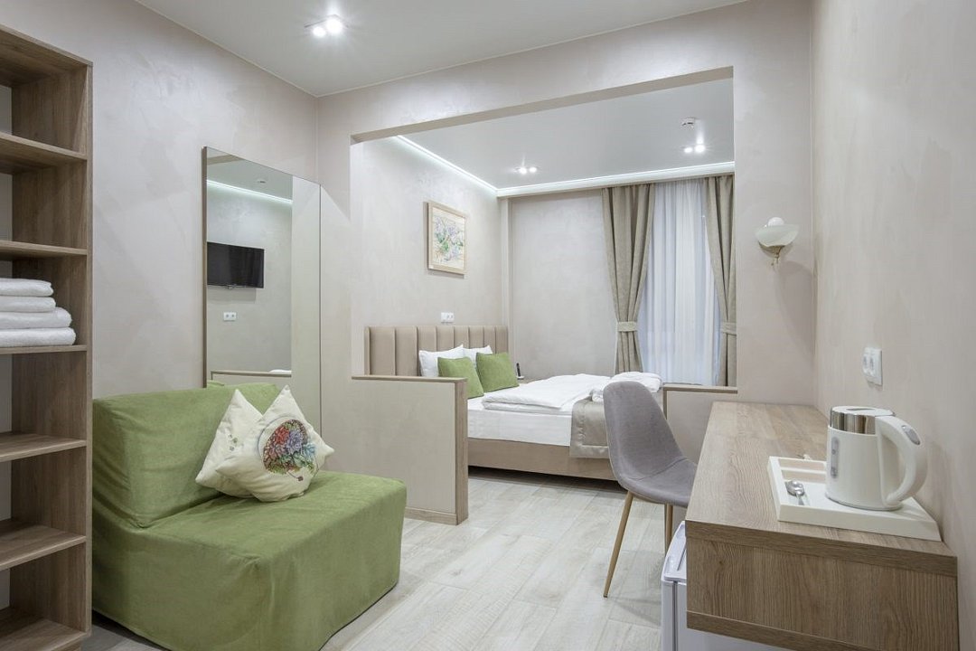 Двухкомнатный комфортный номер с одной большой кроватью или двумя односпальными. В номере есть все самое необходимое для комфортного проживания: - удобства в номере; - косметические принадлежности; - индивидуальное кондиционирование; - чайная станция; - ТВ; - бесплатный WiFi -посуда и столовые приборы -комфортабельный диван -шкаф для хранения вещей -микроволновка -холодильникУслуги и удобства