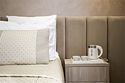 интерактивное телевидение, Wi-Fi, телефон, кондиционер, фен, система безопасности, утюг, санузел, банные полотенца, тапочки, косметические средства, две односпальные или большая двуспальная кровать, гладильная доска, стулья, шкаф для одежды, вешалки, зеркало, чайный набор, чайник, унитаз, раковина, мягкая мебель, питьевая вода, отопление, душ, вид на город, кулер на этаже, стаканы, столовые приборы, туалетный столик, туалетные средства, туалет, раскладной диван, телевизор с плоским экраном, мини-холодильник, мини-кухня, шкаф-купе, гостиничная парфюмерия, гигиенический душ, чайная станция, уборка номера, дождевой и ручной душВ гостиничном номере