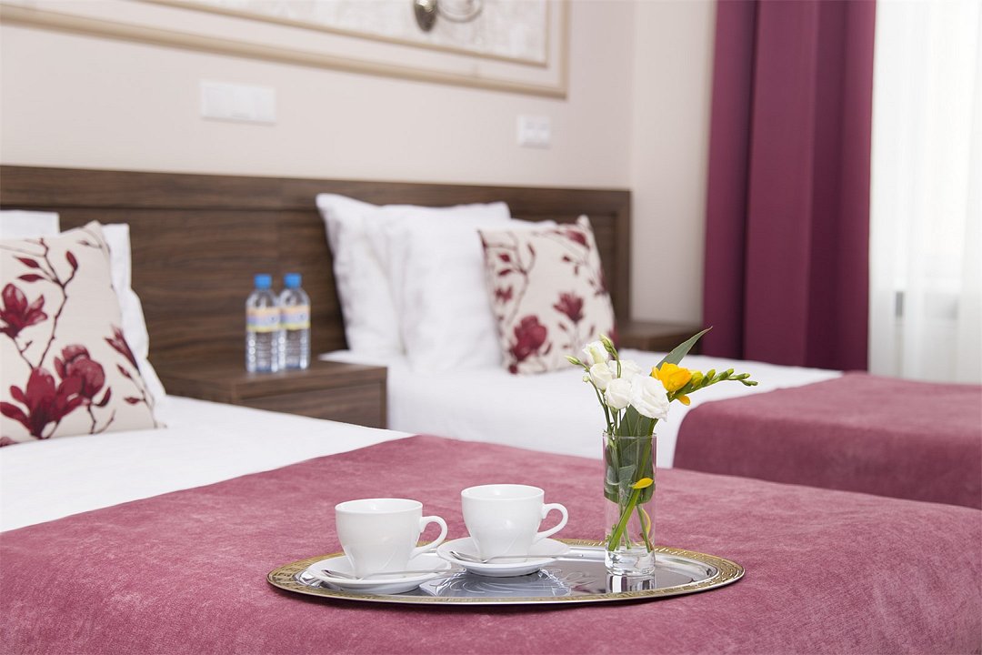 Инфраструктура – вокзалы, парки, достопримечательности, рестораны и бары в пешей доступности от отеля. - Комфорт и удобство – лифт и ресторан, бесплатный WIFI, чайные наборы, холодильники, кондиционеры, сейфы – в каждом номере.
