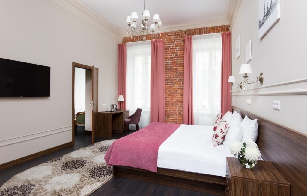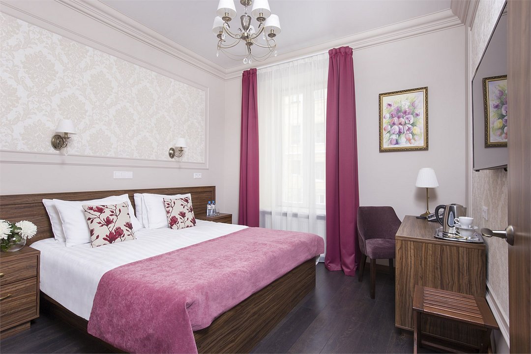 Номера категории Комфорт, где классический интерьер гармонично сочетается с функциональностью современности, подойдут для тех, кто ценит простор и комфорт. Этот просторный номер площадью до 25 м2 создан для спокойного и комфортного отдыха после долгих прогулок по Петербургу или трудового дня. В номерах этой категории ванные комнаты оснащены душевой кабиной.Услуги и удобства