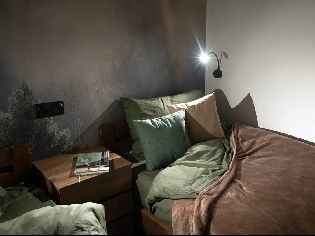 Уютные и комфортные апартаменты в Кировске для компании 4+2 человека располагаются в 700 метрах от подъемника BigWood, парковка для гостей на улице прямо у входа в подъезд. Прогулка до склона пешком занимает всего 7 минут. Вы будете приятно удивлены тем, насколько мы продумали все для Вашего комфортного отдыха, начиная от прекрасных ортопедических матрасов в спальнях, заканчивая полным набором посуды, который Вам может понадобится во время отдыха. Атмосфера, продуманность и интерьер помогут Вам отдохнуть, расслабиться и зарядиться энергией. Наши апартаменты представляют собой прекрасную евротрешку с двумя отдельными спальнями и диваном, представляющим собой дополнительное спальное место для 2х человек. В одной спальне для Вас предусмотрена кровать с ортопедическим матрасом 160х200, во второй спальне для Вас предусмотрены 2 кровати с отличными ортопедическими матрасами 90*200. Атмосфера располагает к отдыху. В гостиной для Вас комфортный диван для отдыха, который при необходимости может использоваться как дополнительное спальное место размером 140*200, ТВ с доступом к интернету, обеденный стол. Мы также для Вас предусмотрели некоторые настольные игры и карты, чтобы вечера проходили интереснее. Полноценная кухня оборудована холодильником, варочной панелью, духовым шкафом, посудомоечной машиной, микроволновой печью, чайником и всей необходимой посудой для того, чтобы вы смогли для себя приготовить ваш любимый завтрак, обед или ужин, заварить себе отличный кофе или чай, выпить бокал вина или шампанского. Мы предусмотрели для Вас гель для душа, шампунь, кондиционер, фен. Также в квартире имеется стиральная машина, утюг, сушилки для обуви, базовый набор продуктов, необходимая бытовая химия. Организовано место для хранения спортивного инвентаря. По предварительному запросу готовы для Вас организовать что-либо дополнительное, если это сделает Ваше пребывание у нас более комфортным.В номере