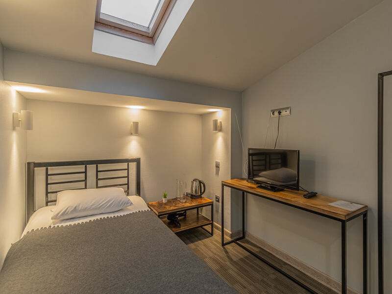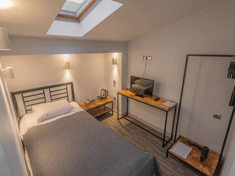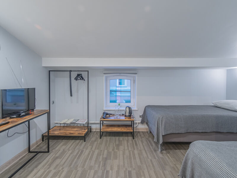 Внизу милый интерьер. А вот номера совсем простенькие и очень маленькие. Имейте в виду - 2 человека максимум, дополнительное место просто некуда ставить, даже для ребёнка.