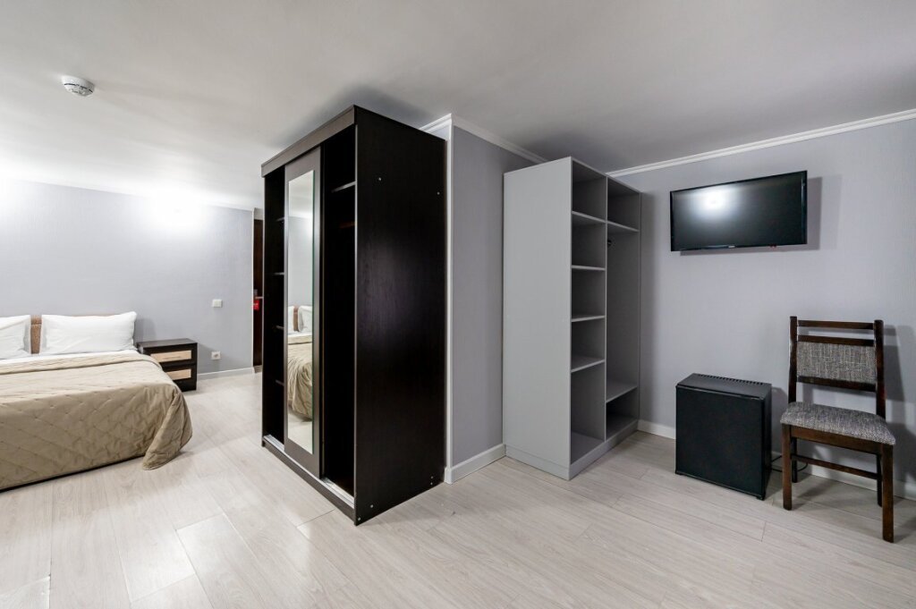 В номере вас будут ждать телевизор. Оснащение зависит от выбранной категории номера.