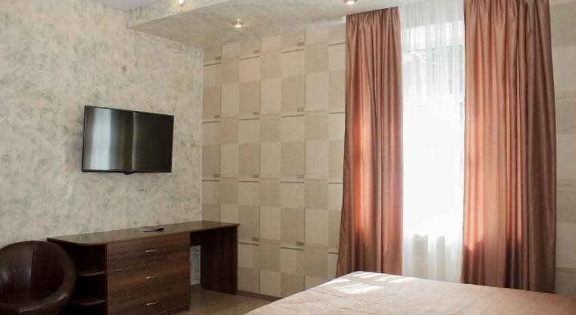 В номере вы найдёте телевизор и тапочки. Оснащение зависит от выбранной категории номера.