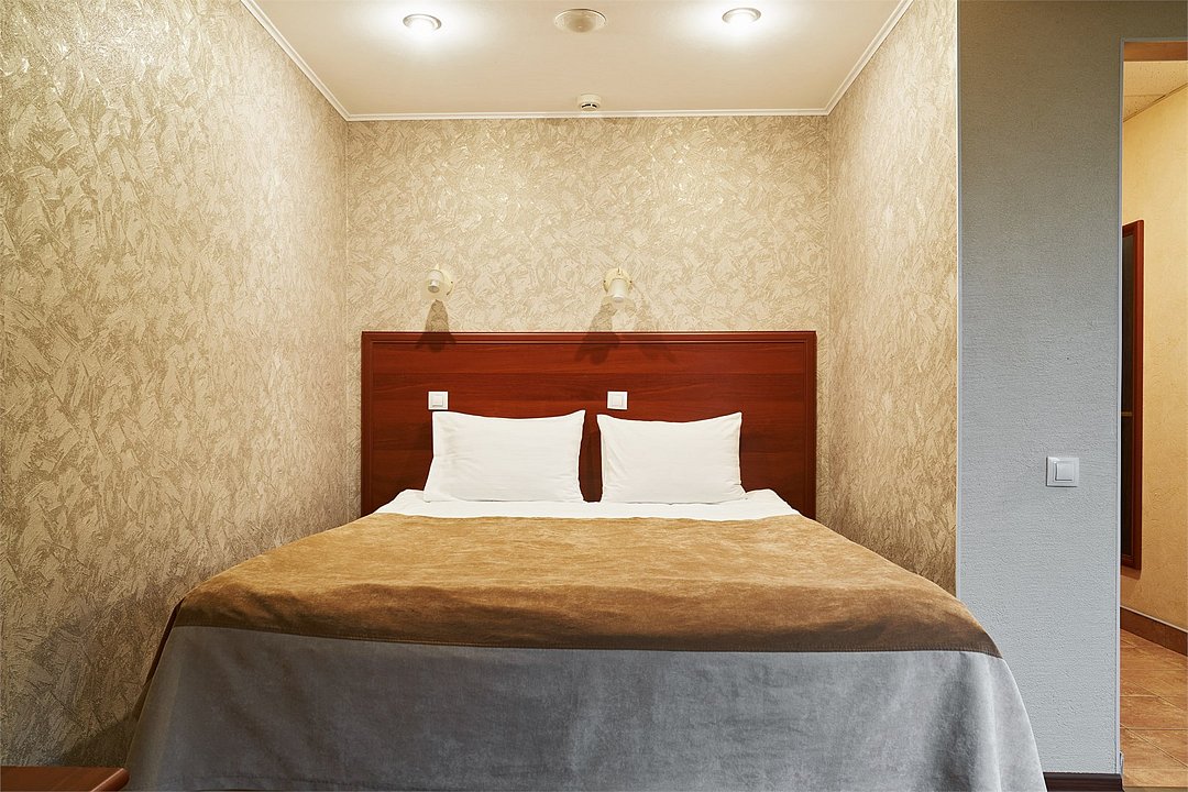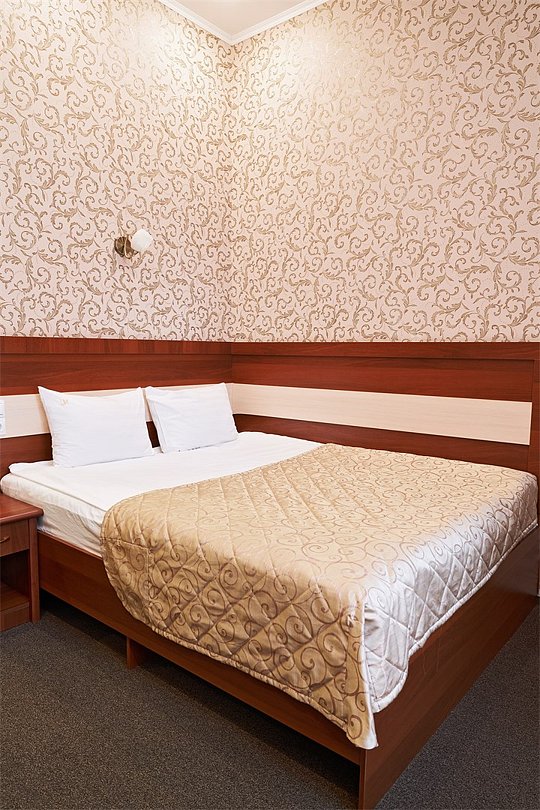Небольшой номер с двуспальной кроватью и собственной ванной комнатой. Окна номеров данной категории выходят в тихий дворик, что позволит Вам спокойно отдохнуть и набраться сил перед следующим экскурсионным или деловым днем.Услуги и удобства