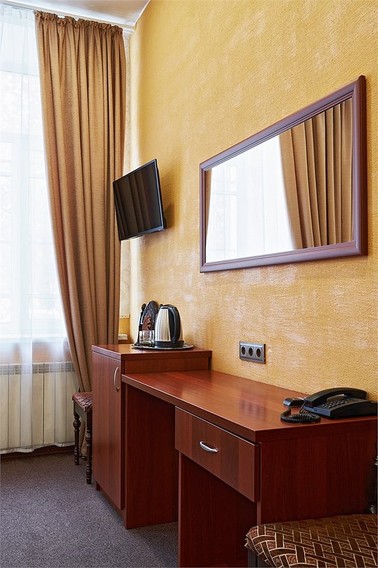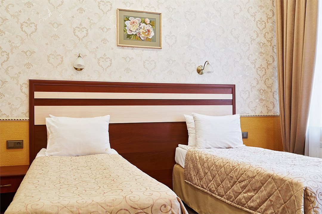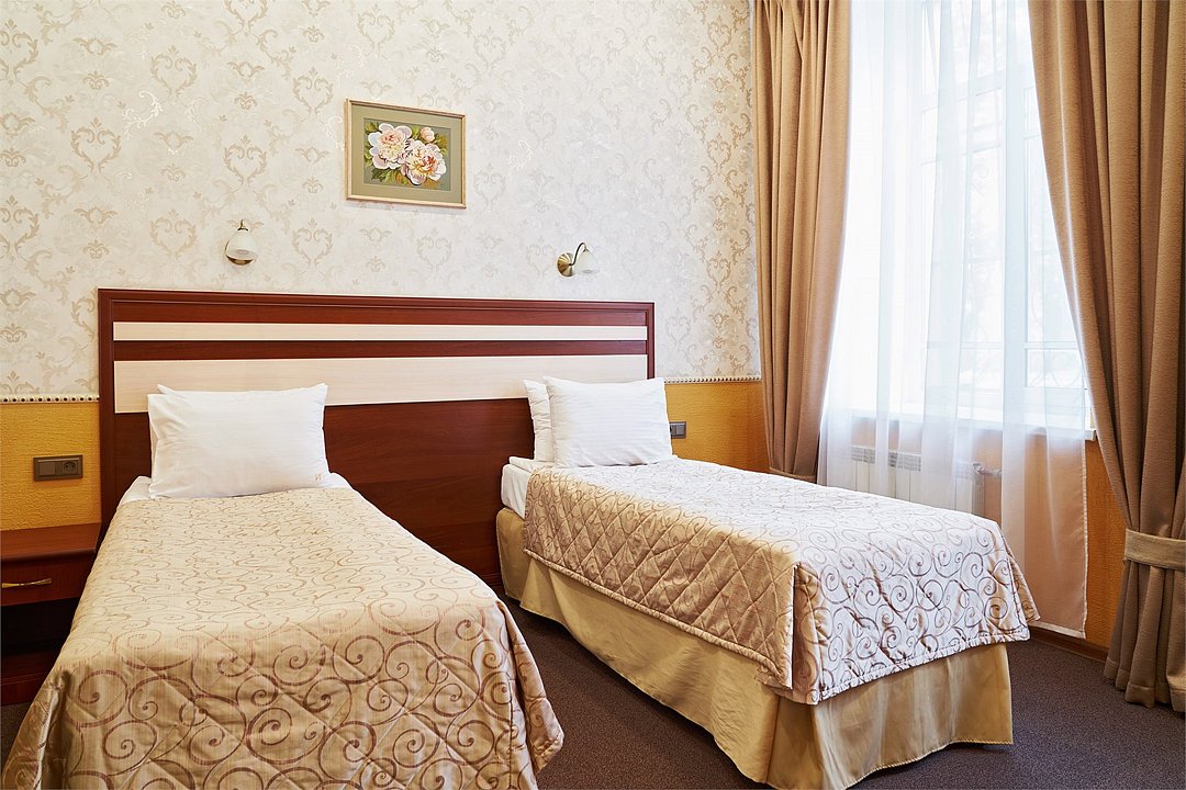 Номер с двумя односпальными кроватями. Окна номеров данной категории выходят в тихий дворик, что позволит Вам спокойно отдохнуть и набраться сил перед следующим экскурсионным или деловым днем.Услуги и удобства