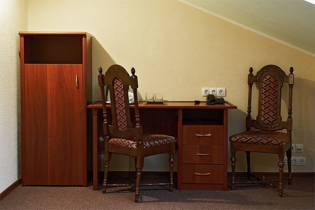 Wi-Fi, кондиционер, светильник, фен, душевая кабина, халаты, банные полотенца, тапочки, кровать «Queen size», ортопедический матрас, тумбы, стулья, шкаф для одежды, вешалки, письменный стол, обеденный стол, зеркало, мебельный гарнитур, чайный набор, сейф, чайник, унитаз, раковина, кулер на этаже, стаканы, раскладной диван, внутренний телефон, телевизор с плоским экраном, мини-холодильник, мансардные окна, онлайн-регистрация до заезда, услуги прачечной (платно), шапочка для душа, можно с питомцамиВ гостиничном номере