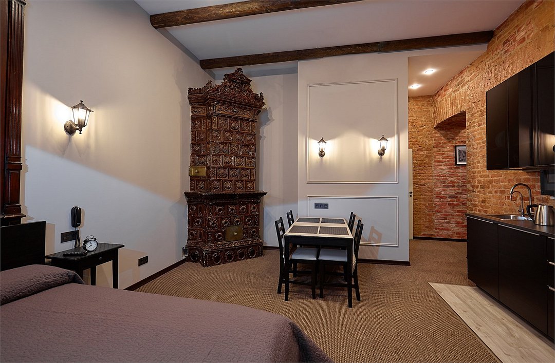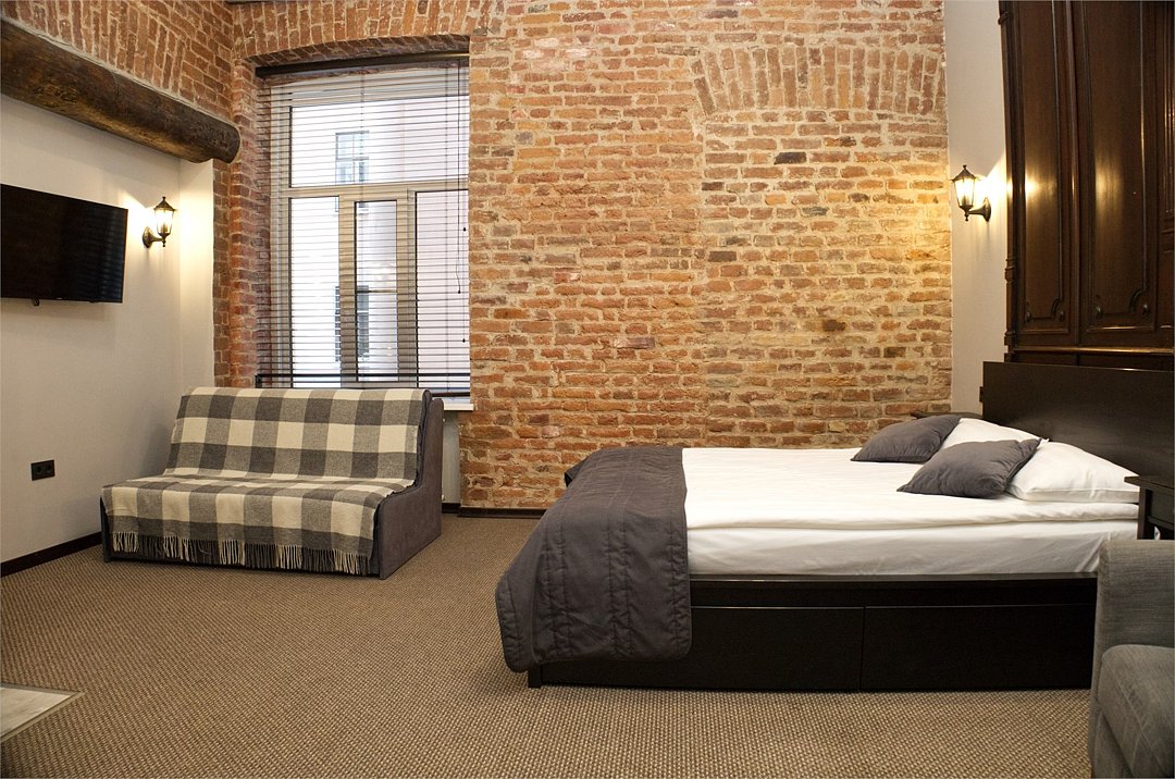 Просторные, стильные лофт - студии c кондидиционером, сплитсистемой, собственной кухней, высокими потолками 4 м располагаются в историческом купеческом доме 1856 г.п. Один из номеров имеет камин (историческую печь), переживший блокаду. Очень ценятся семьями с детьми из-за наличия допместа и взыскательными путешественниками. Здесь в полной мере ощущается атмосфера Петербурга Достоевского. Автор интерьера- дизайнер Наталия Пашутина.Услуги и удобства