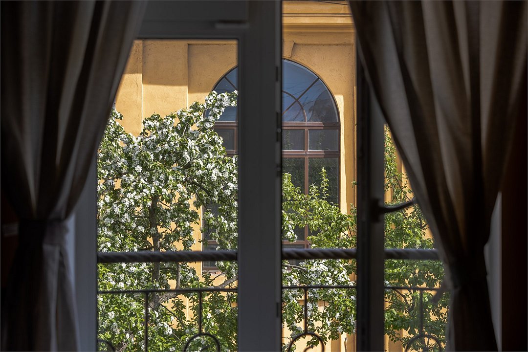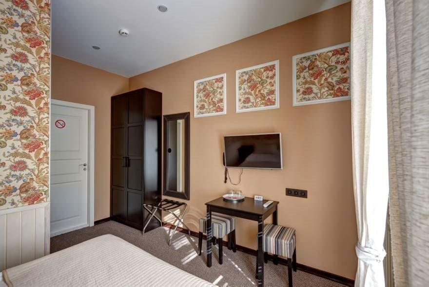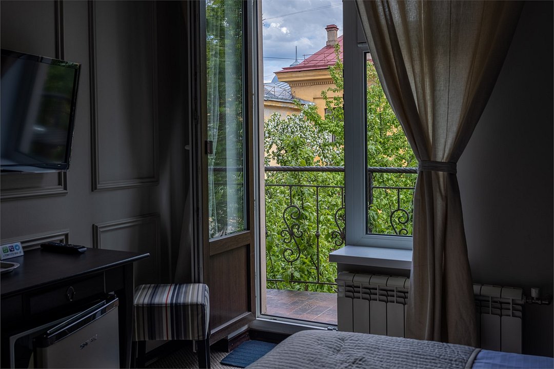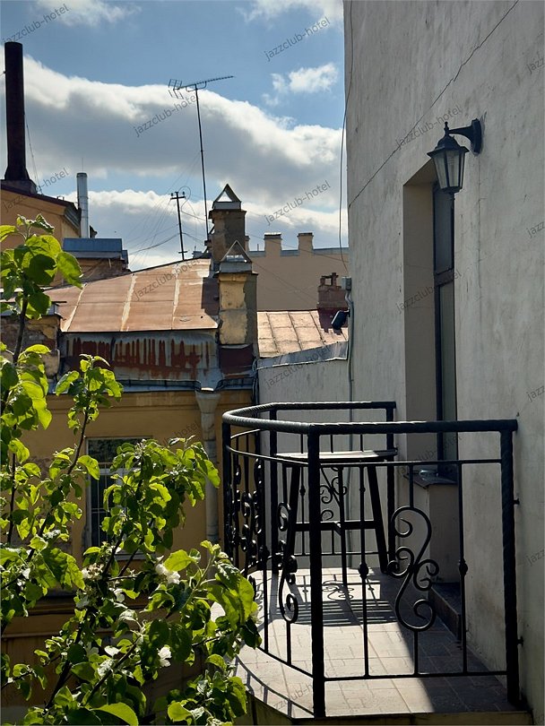 Стильные номера с балконами, выходящими в настоящий яблоневый сад. Ветки яблонь заходят прямо на балкон. Это излюбленные номера наших известных гостей -музыкантов, режиссеров, продюсеров, которые напитываются здесь атмосферой Петербурга. Если Вы жили в 301 номере, то Вам повезло. Так как этот номер расписан буквально каждый день и практически никогда не бывает свободным. В номере 301 ванная с окном, в номере 303- санузел с душем.Услуги и удобства