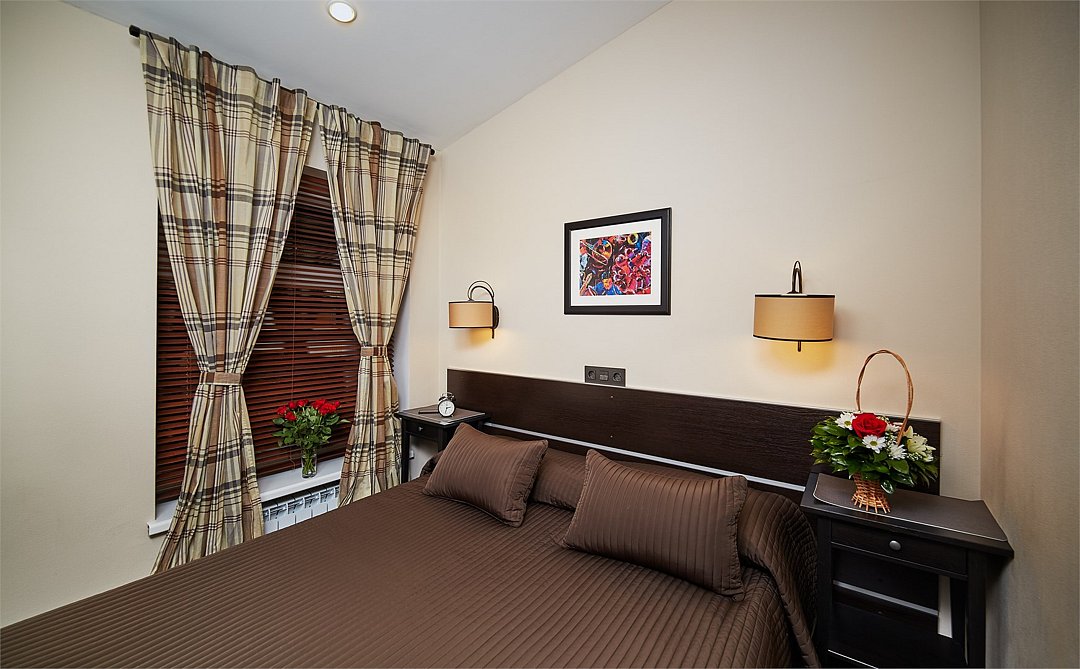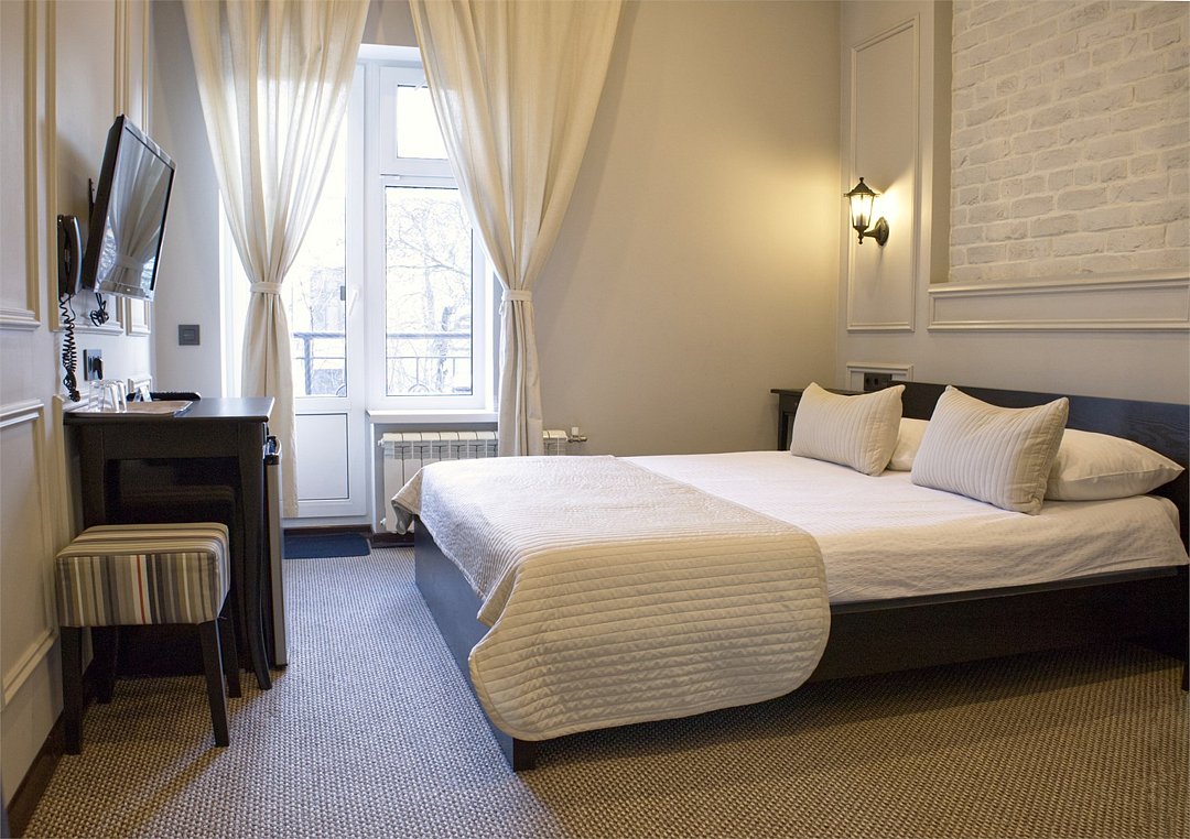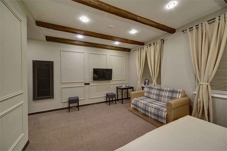 Самый большой и просторный номер 30 м2 в отеле. Большая ванная комната, двухместный диван и толстые звукоизолированные стены это его главные преимущества. Любимый номер семей с детьми. Удачно расположен относительно ресепшн-чайник с кипятком, микроволновка, холодильником в круглосуточном доступе. Вмещает до 4х взрослых или семью из 5 человек (2взр.+3 детей).Услуги и удобства