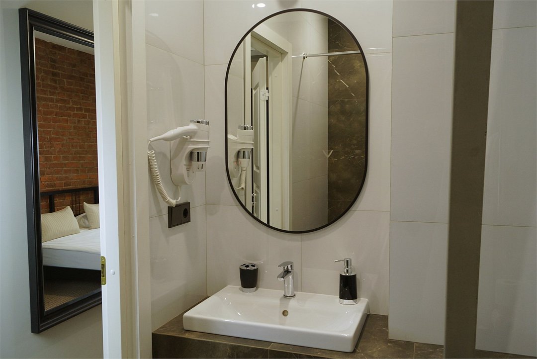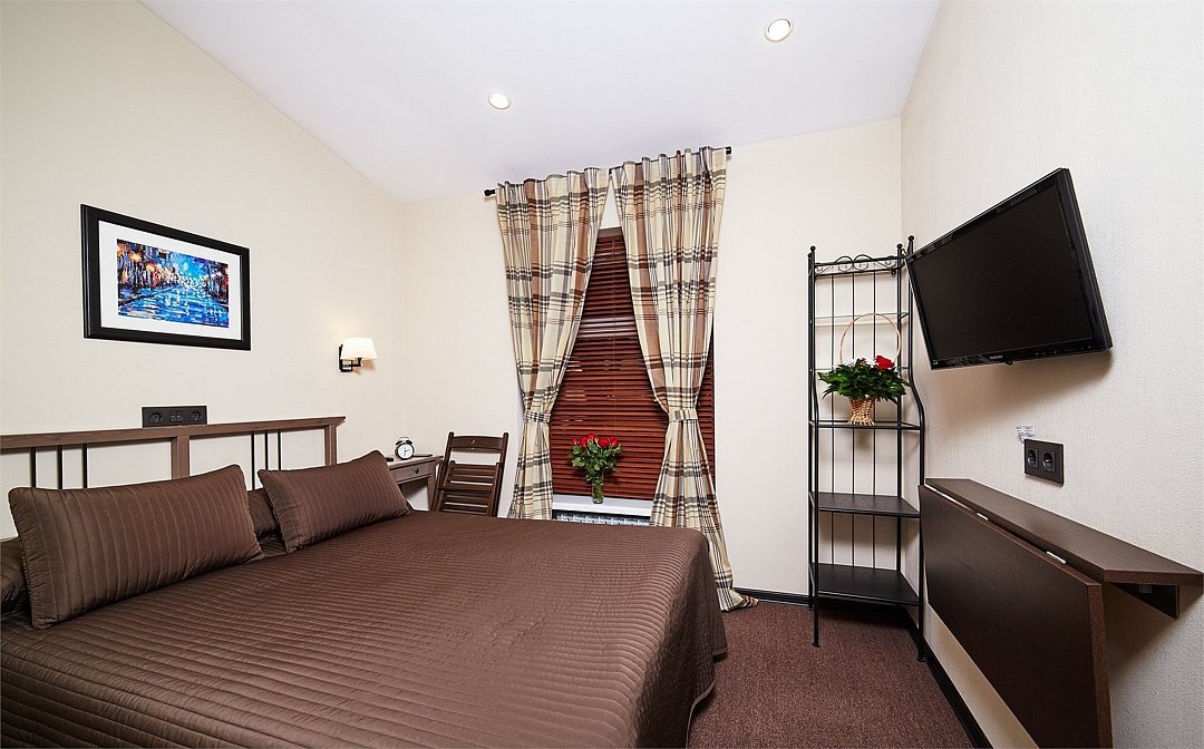Уютный небольшой номер, предназначенный для проживания одного-двух человек с одной большой или двумя раздельными удобными кроватями. Оборудован санузлом с душем и электрическим полотенцесушителем. Полотенца и банные принадлежности предоставляются бесплатно. Тапочки -200 рублей. Идеален для командированных гостей и пар.Услуги и удобства