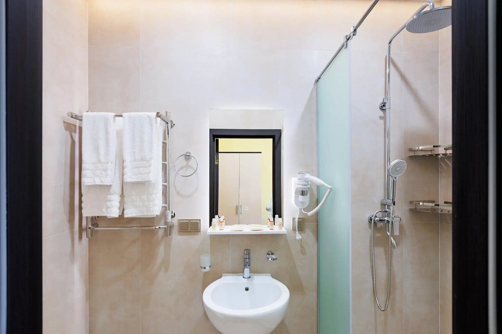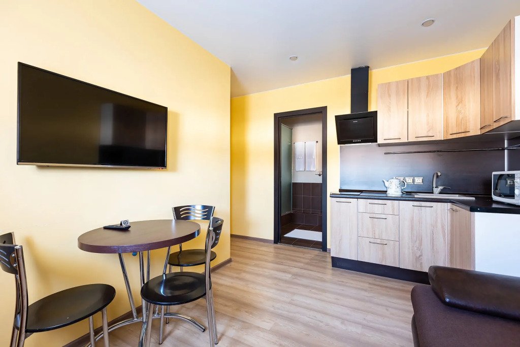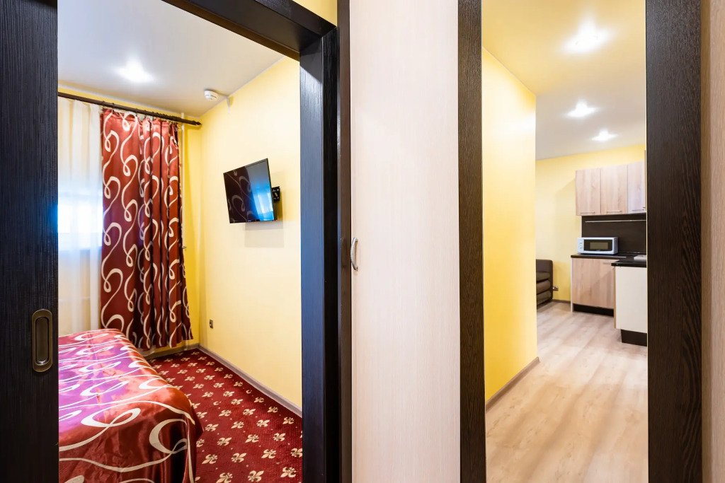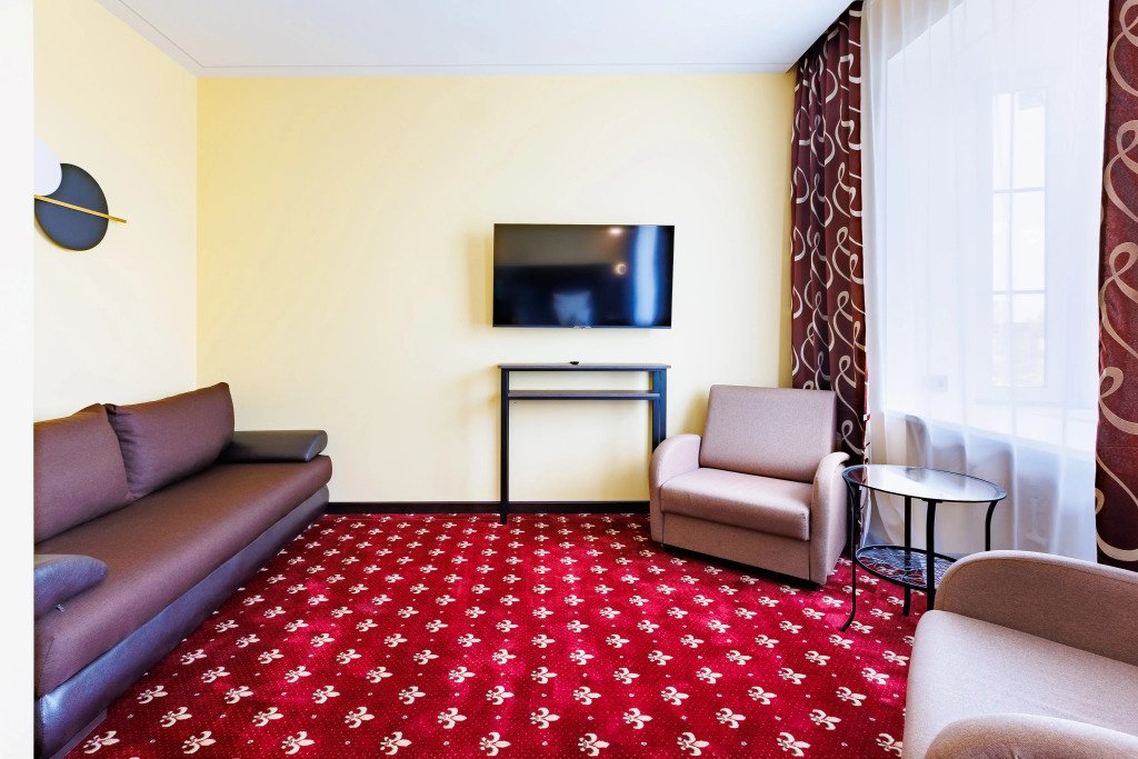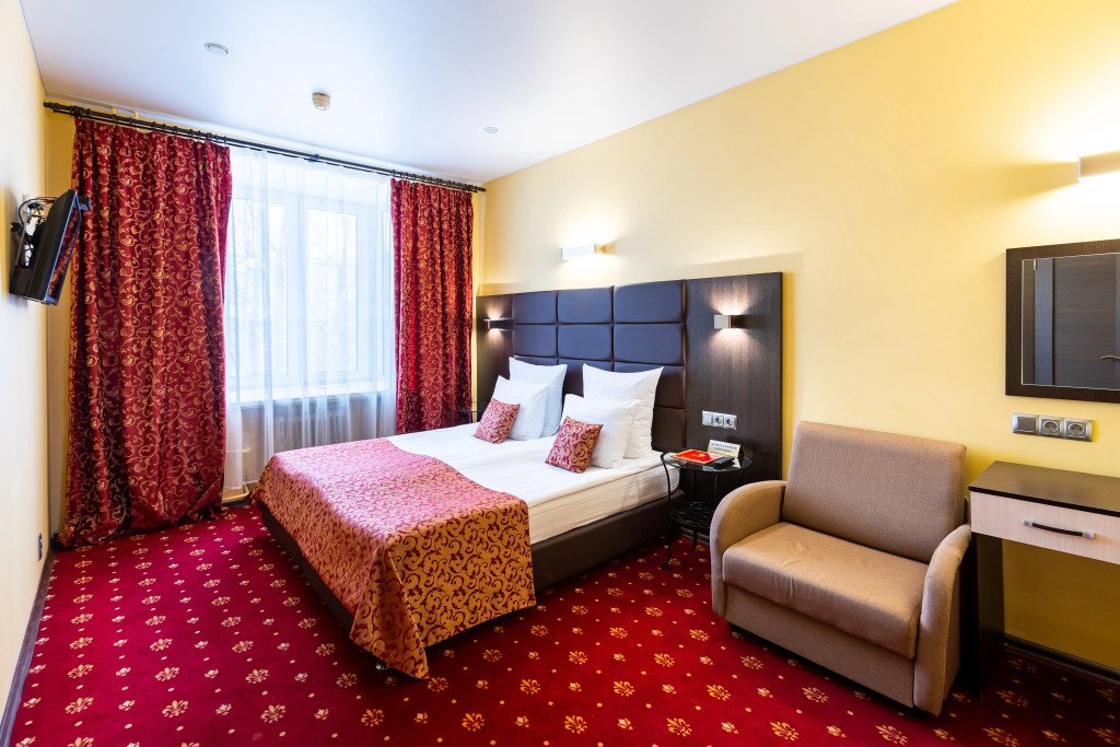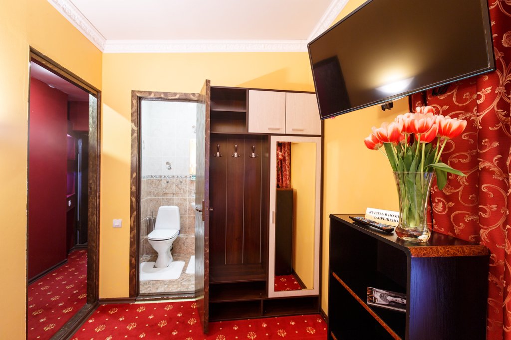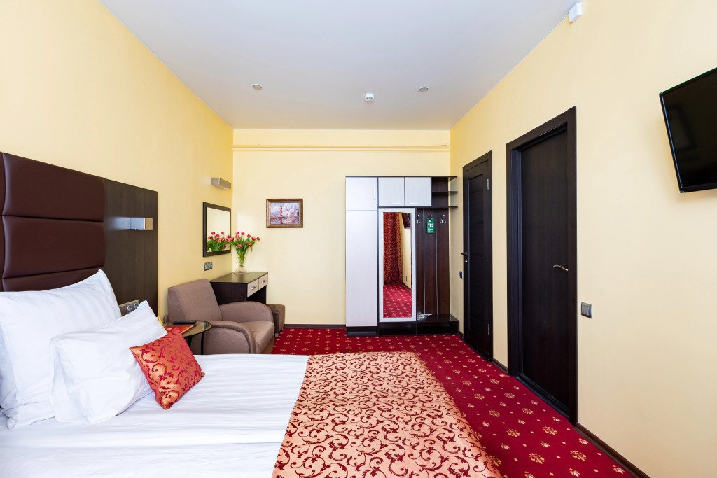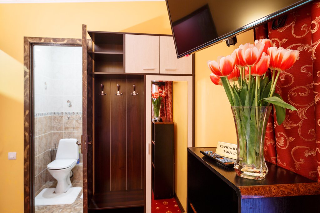 В номере гостей ждут телевизор и халат. Перечисленные услуги есть не во всех номерах.