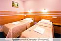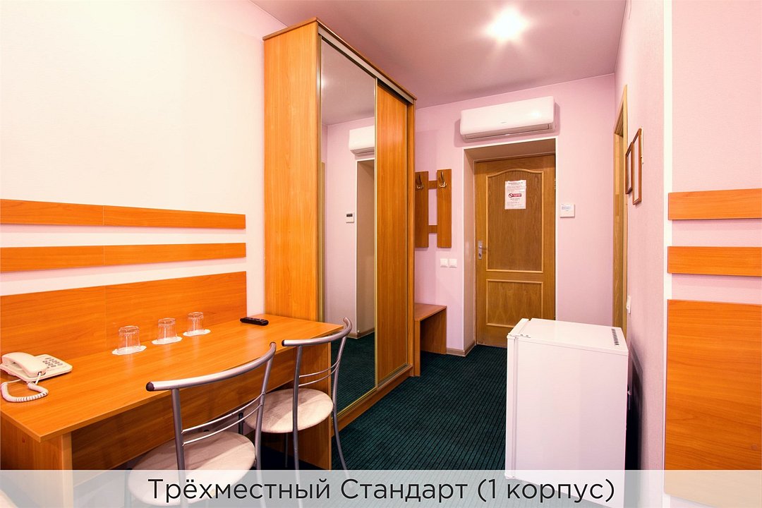 Номера категории "3 местный стандарт" - это отличное сочетание цены и качества. Номер состоит из спальной комнаты, небольшого холла и санузла. Стены номера оформлены в пастельных тонах, ковровое покрытие на полу. Номера данной категории расположены в 1 корпусе отеля и оборудованы кондиционерами. Проживание с животными в данной категории не предусмотрено. В стоимость проживания, в номере любой категории, входит: - завтрак «Шведский стол» с 7.00 до 11.00 (согласно выбранному тарифу). - посещение 25-метрового бассейна* с 7.00 до 21.45 в номерах повышенной категории; с 07.00 до 15.00 в номерах категории "Стандарт" (в остальное время - скидка 20%; с 1.06 по 31.08 бассейн входит в стоимость весь день для всех категорий номеров). - посещение тренажёрного зала, саун (финская и турецкая) с 7.00 до 21.45. - мини-гольф. - интернет Wi-Fi. - Скидка 20% на индивидуальные сауны, мангальные беседки и летнюю площадку для шашлыка. - Пользование площадкой со столиками "Звёздное небо" с возможностью аренды мангала. * Бассейн находится в 1 корпусе отеля. Посещение бассейна осуществляется по предварительной записи в часы работы спортивного комплекса. Для посещения бассейна необходимо иметь купальные принадлежности, тапочки и шапочки. Сеанс плавания в бассейне начинается ровно в каждый час и длится 45 минут. С 1.09 по 31.05 посещение бассейна для гостей отеля недоступно в понедельник, среду и пятницу с 19:00 до 20:00. При заселении в отель каждому гостю необходимо предъявить документ удостоверяющий личность (паспорт). Для детей до 14 лет необходимо предъявление свидетельства о рождении. Для заселения несовершеннолетних детей без родителей необходимо предъявить доверенность (для детей до 14 лет доверенность должна быть на сопровождающее лицо, для детей старше 14 лет доверенность может быть оформлена на ребенка). - С иностранных граждан взимается плата за услуги по оформлению документов для постановки на миграционный учёт в размере 300.00 RUB за весь период проживания с человека.Услуги и удобства
