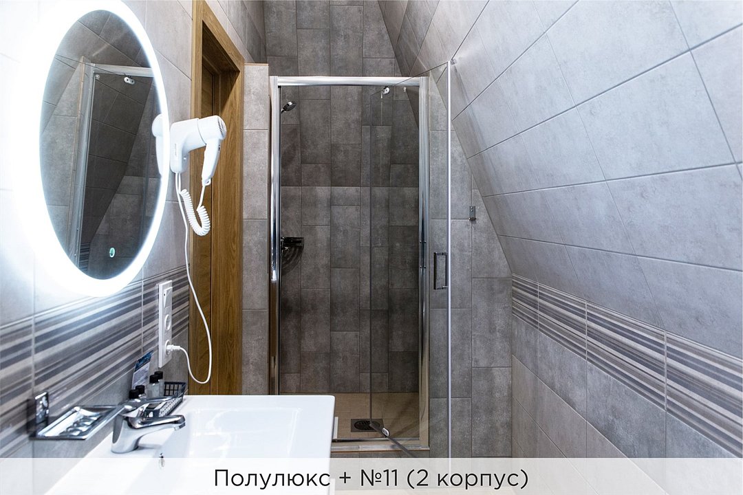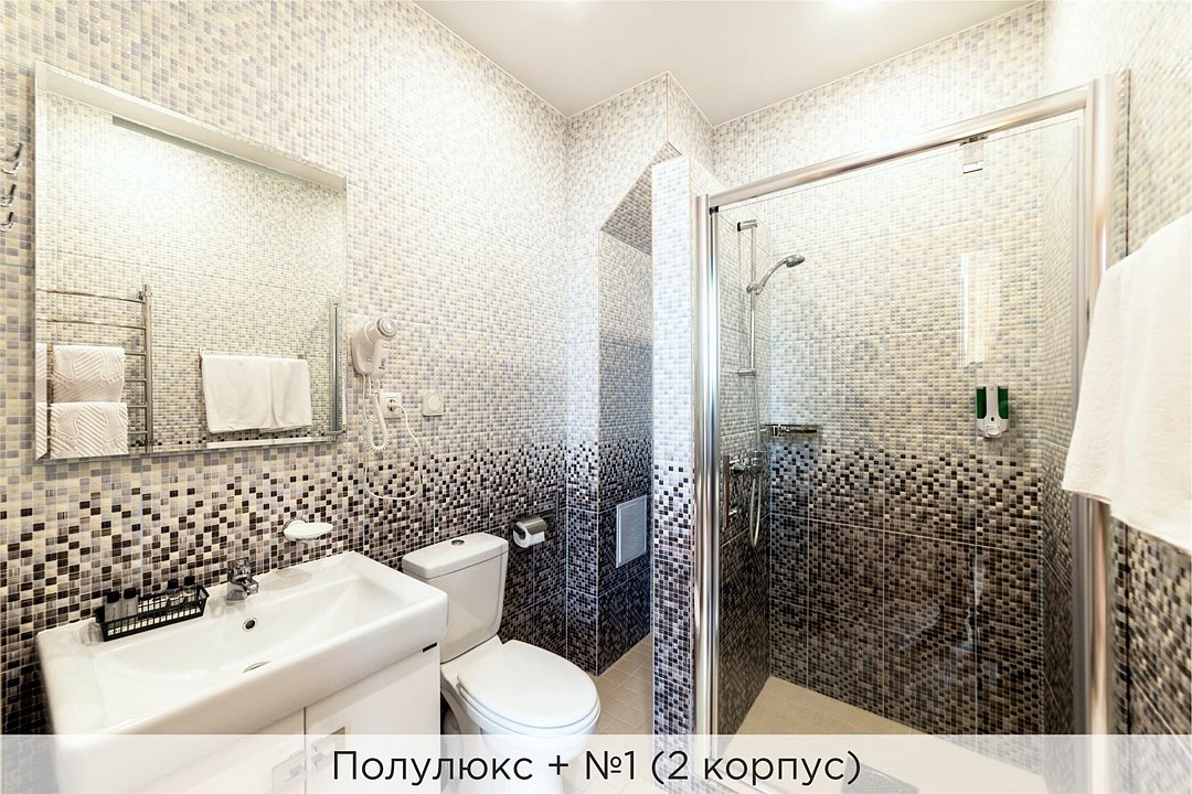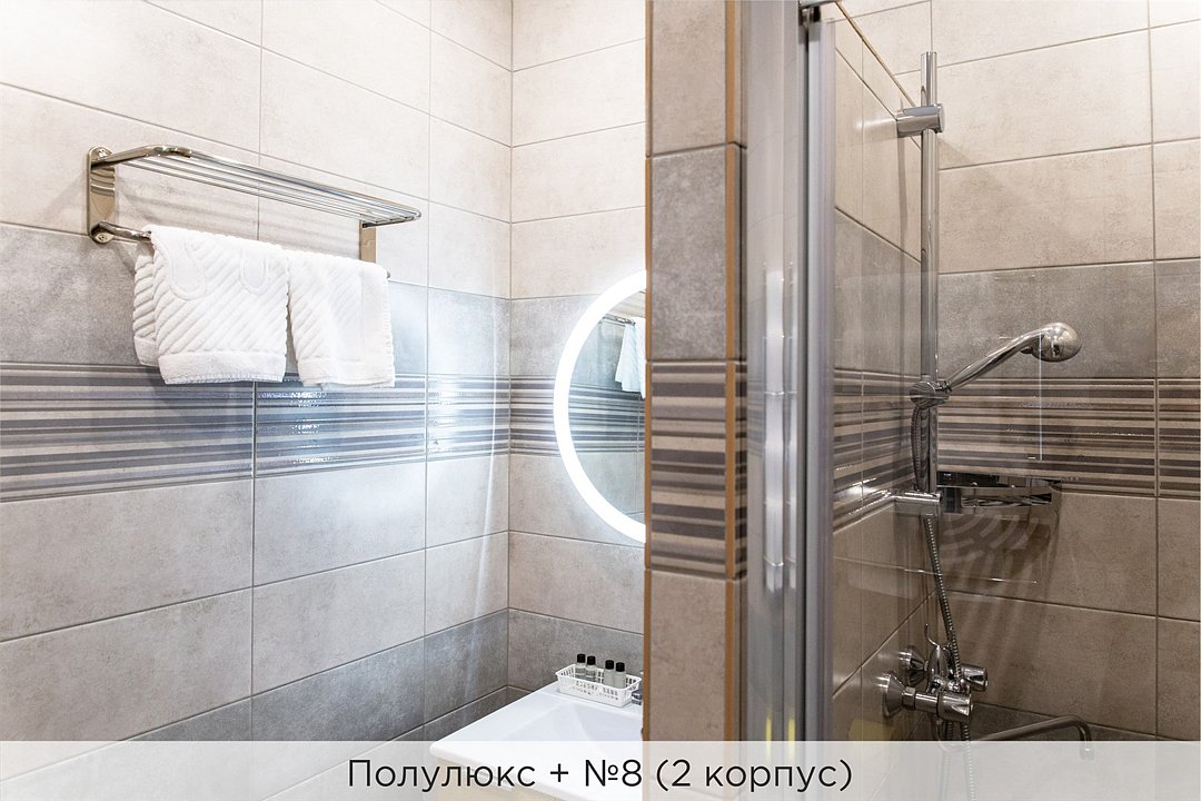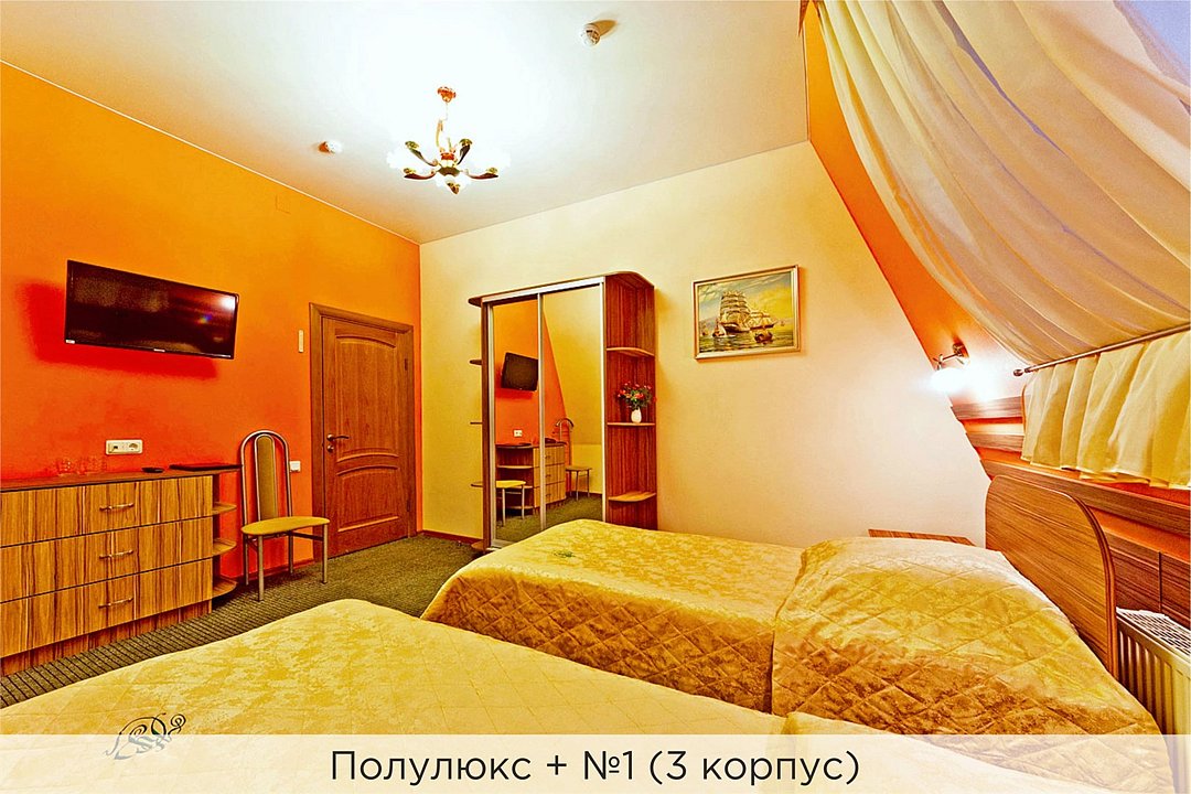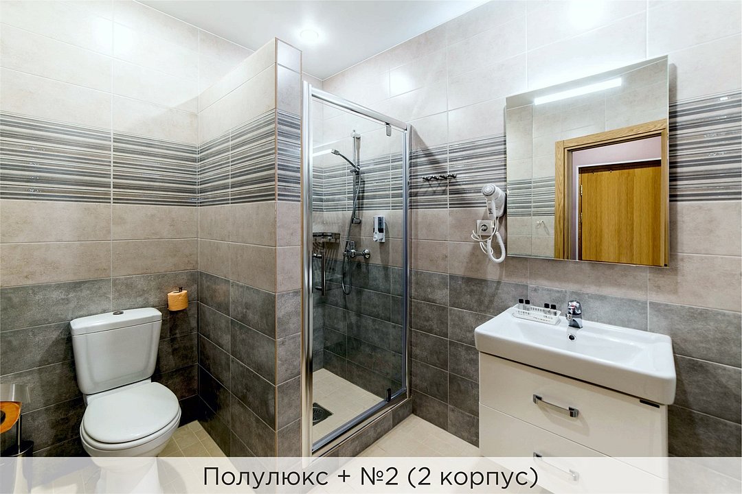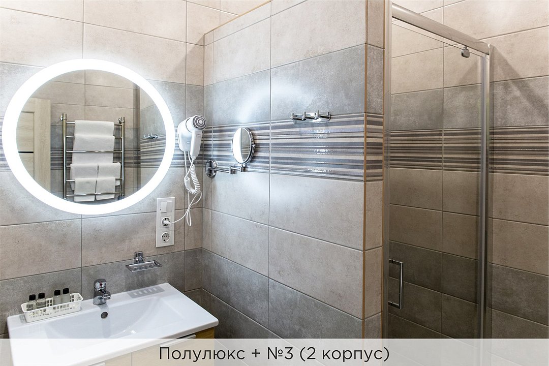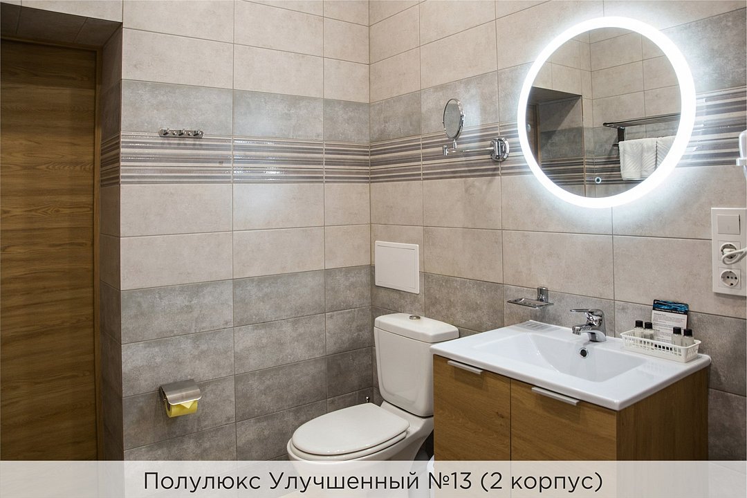 Номера категории "Полулюкс улучшенный" - комфортный 2-х местный номер, состоящий из спальной комнаты с двумя полуторными кроватями (могут стоять вместе или раздельно) или одной двуспальной, небольшого холла и санузла. Номера площадью 23 кв.м. Номера данной категории расположены в 1 и 2 корпусах отеля и оборудованы кондиционером. Проживание с животными в данной категории не предусмотрено. В стоимость проживания, в номере любой категории, входит: - завтрак «Шведский стол» с 7.00 до 11.00 (согласно выбранному тарифу). - посещение 25-метрового бассейна* с 7.00 до 21.45 в номерах повышенной категории; с 07.00 до 15.00 в номерах категории "Стандарт" (в остальное время - скидка 20%; с 1.06 по 31.08 бассейн входит в стоимость весь день для всех категорий номеров). - посещение тренажёрного зала, саун (финская и турецкая) с 7.00 до 21.45. - мини-гольф. - интернет Wi-Fi. - Скидка 20% на индивидуальные сауны, мангальные беседки и летнюю площадку для шашлыка. - Пользование площадкой со столиками "Звёздное небо" с возможностью аренды мангала. * Бассейн находится в 1 корпусе отеля. Посещение бассейна осуществляется по предварительной записи в часы работы спортивного комплекса. Для посещения бассейна необходимо иметь купальные принадлежности, тапочки и шапочки. Сеанс плавания в бассейне начинается ровно в каждый час и длится 45 минут. С 1.09 по 31.05 посещение бассейна для гостей отеля недоступно в понедельник, среду и пятницу с 19:00 до 20:00. При заселении в отель каждому гостю необходимо предъявить документ удостоверяющий личность (паспорт). Для детей до 14 лет необходимо предъявление свидетельства о рождении. Для заселения несовершеннолетних детей без родителей необходимо предъявить доверенность (для детей до 14 лет доверенность должна быть на сопровождающее лицо, для детей старше 14 лет доверенность может быть оформлена на ребенка). - С иностранных граждан взимается плата за услуги по оформлению документов для постановки на миграционный учёт в размере 300.00 RUB за весь период проживания с человека.Услуги и удобства