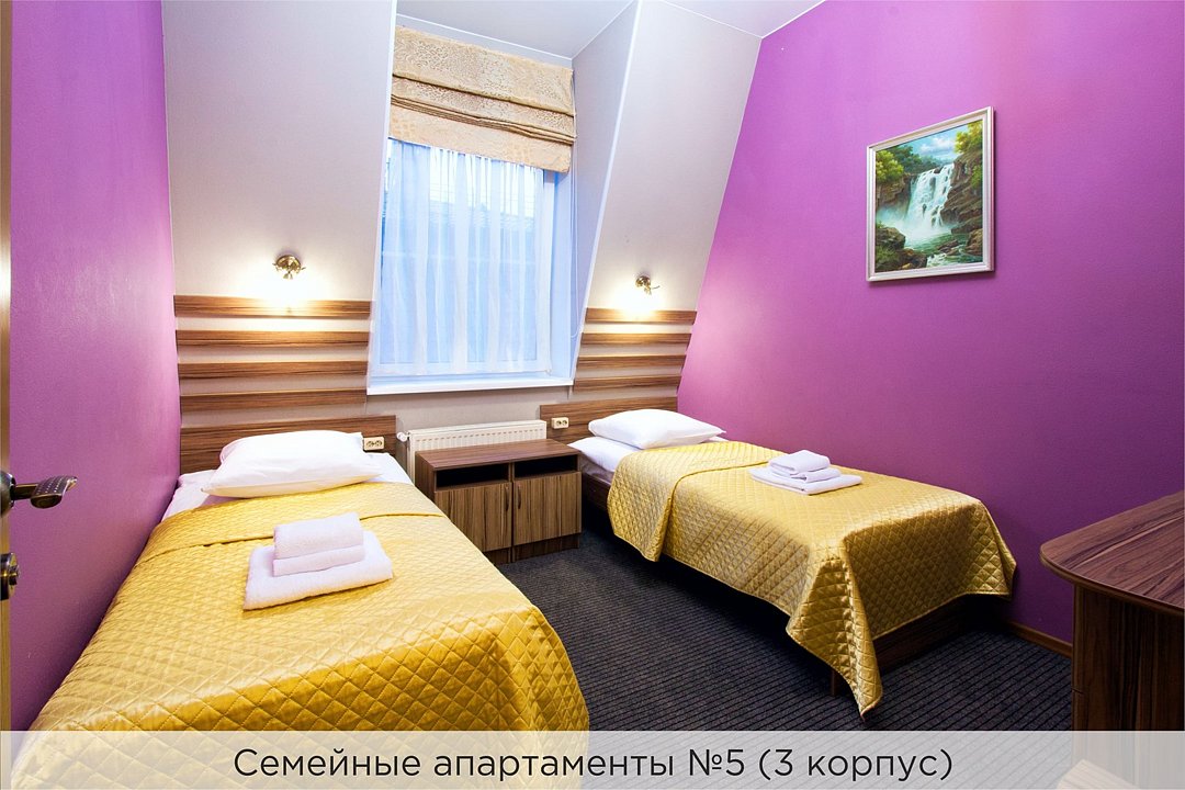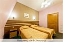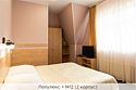 Уютный номер, состоящий из спальной комнаты с двумя раздельными кроватями, которые сдвинуты вместе и объединены общим наматрасником (по желанию могут быть раздвинуты), небольшого холла и совмещенного санузла с угловой ванной. Номер расположен во 2 корпусе и оборудован кондиционером. Проживание с животными в данной категории не предусмотрено. В стоимость проживания, в номере любой категории, входит: - завтрак «Шведский стол» с 7.00 до 11.00 (согласно выбранному тарифу). - посещение 25-метрового бассейна* с 7.00 до 21.45 в номерах повышенной категории; с 07.00 до 15.00 в номерах категории "Стандарт" (в остальное время - скидка 20%; с 1.06 по 31.08 бассейн входит в стоимость весь день для всех категорий номеров). - посещение тренажёрного зала, саун (финская и турецкая) с 7.00 до 21.45. - мини-гольф. - интернет Wi-Fi. - Скидка 20% на индивидуальные сауны, мангальные беседки и летнюю площадку для шашлыка. - Пользование площадкой со столиками "Звёздное небо" с возможностью аренды мангала. * Бассейн находится в 1 корпусе отеля. Посещение бассейна осуществляется по предварительной записи в часы работы спортивного комплекса. Для посещения бассейна необходимо иметь купальные принадлежности, тапочки и шапочки. Сеанс плавания в бассейне начинается ровно в каждый час и длится 45 минут. С 1.09 по 31.05 посещение бассейна для гостей отеля недоступно в понедельник, среду и пятницу с 19:00 до 20:00. При заселении в отель каждому гостю необходимо предъявить документ удостоверяющий личность (паспорт). Для детей до 14 лет необходимо предъявление свидетельства о рождении. Для заселения несовершеннолетних детей без родителей необходимо предъявить доверенность (для детей до 14 лет доверенность должна быть на сопровождающее лицо, для детей старше 14 лет доверенность может быть оформлена на ребенка). - С иностранных граждан взимается плата за услуги по оформлению документов для постановки на миграционный учёт в размере 300.00 RUB за весь период проживания с человека.Услуги и удобства