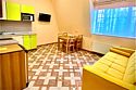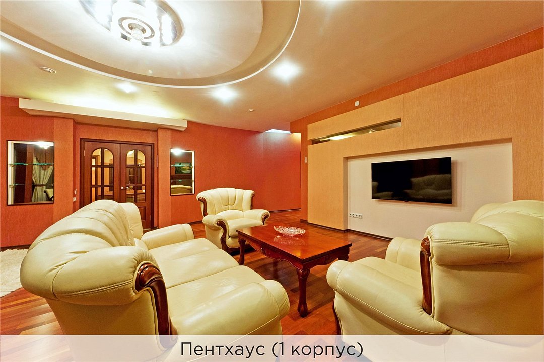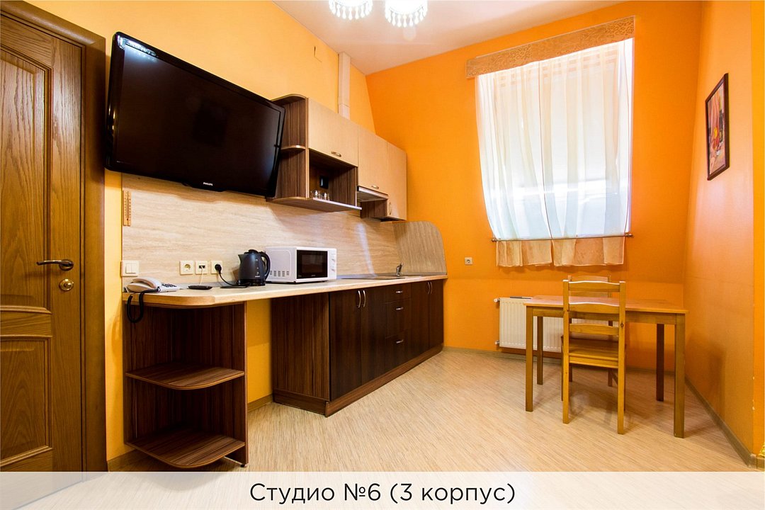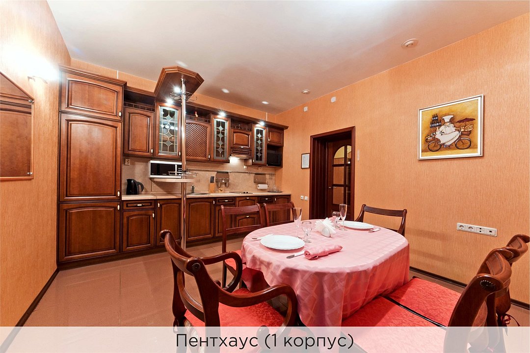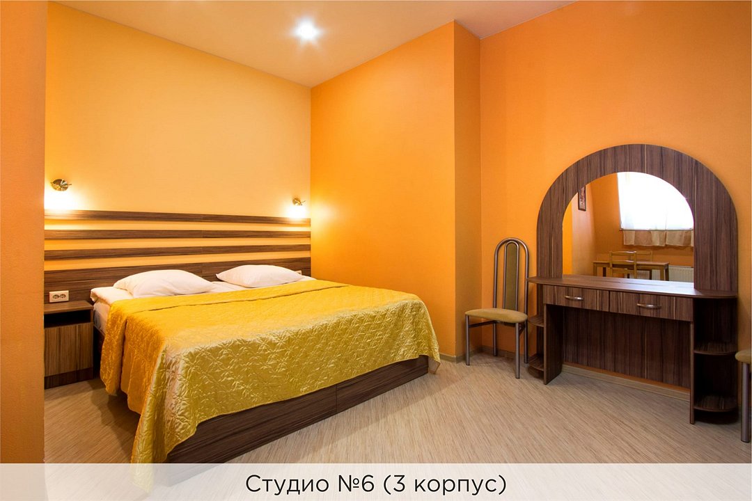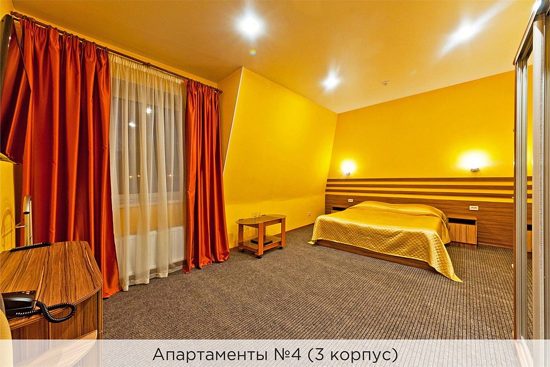 Уютные апартаменты с 1 спальной комнатой (выполненной в персиковых тонах), кухней и совмещенным санузлом. Кухня оборудована варочной панелью, холодильником, эл. чайником, есть вся необходимая посуда. Номер расположен в 3 корпусе. Не оборудован кондиционером. Проживание с животными в данной категории не предусмотрено. В стоимость проживания, в номере любой категории, входит: - завтрак «Шведский стол» с 7.00 до 11.00 (согласно выбранному тарифу). - посещение 25-метрового бассейна* с 7.00 до 21.45 в номерах повышенной категории; с 07.00 до 15.00 в номерах категории "Стандарт" (в остальное время - скидка 20%; с 1.06 по 31.08 бассейн входит в стоимость весь день для всех категорий номеров). - посещение тренажёрного зала, саун (финская и турецкая) с 7.00 до 21.45. - мини-гольф. - интернет Wi-Fi. - Скидка 20% на индивидуальные сауны, мангальные беседки и летнюю площадку для шашлыка. - Пользование площадкой со столиками "Звёздное небо" с возможностью аренды мангала. * Бассейн находится в 1 корпусе отеля. Посещение бассейна осуществляется по предварительной записи в часы работы спортивного комплекса. Для посещения бассейна необходимо иметь купальные принадлежности, тапочки и шапочки. Сеанс плавания в бассейне начинается ровно в каждый час и длится 45 минут. С 1.09 по 31.05 посещение бассейна для гостей отеля недоступно в понедельник, среду и пятницу с 19:00 до 20:00. При заселении в отель каждому гостю необходимо предъявить документ удостоверяющий личность (паспорт). Для детей до 14 лет необходимо предъявление свидетельства о рождении. Для заселения несовершеннолетних детей без родителей необходимо предъявить доверенность (для детей до 14 лет доверенность должна быть на сопровождающее лицо, для детей старше 14 лет доверенность может быть оформлена на ребенка). - С иностранных граждан взимается плата за услуги по оформлению документов для постановки на миграционный учёт в размере 300.00 RUB за весь период проживания с человека.Услуги и удобства
