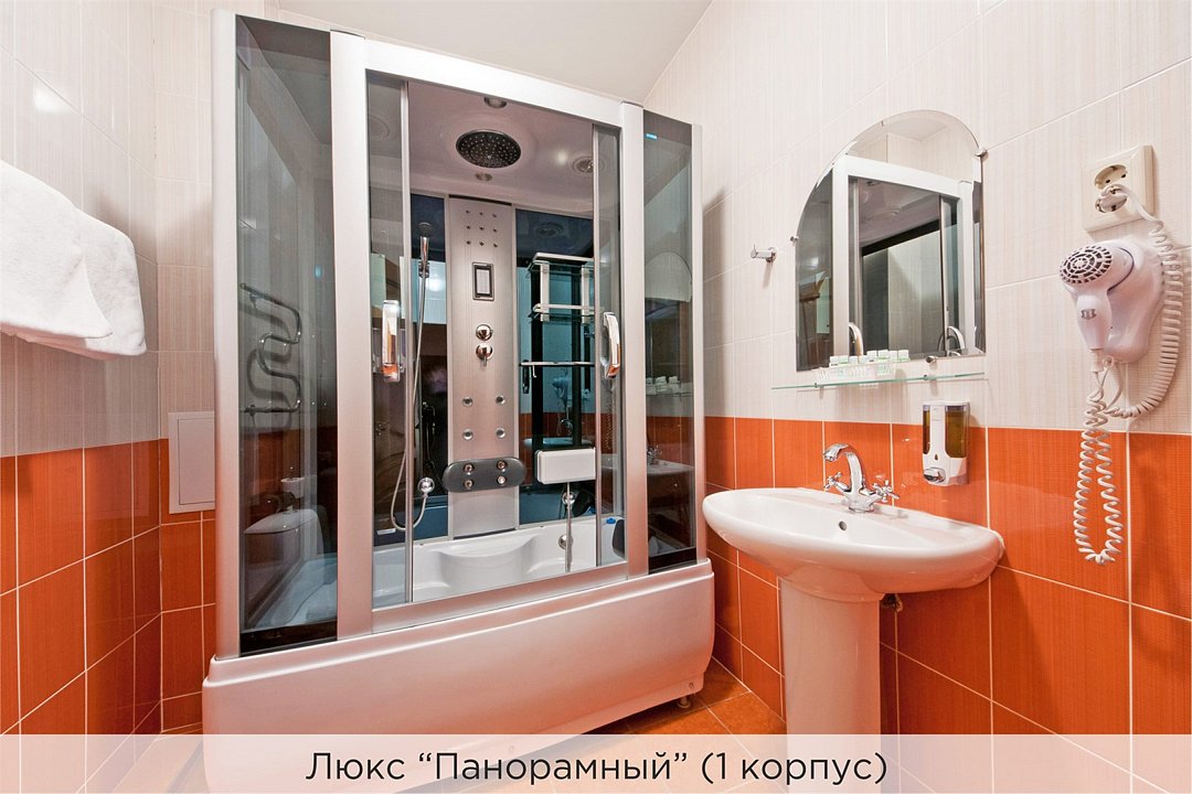 Светлые просторные Люксы на 3 и 4 этажах отеля «К-Визит» с панорамными окнами. Номера выполнены в пастельных тонах. Совмещенный санузел ,душевая кабина с гидромассажем. Номера расположены в 1 корпусе и оборудованы кондиционером. Проживание с животными в данной категории не предусмотрено. В стоимость проживания, в номере любой категории, входит: - завтрак «Шведский стол» с 7.00 до 11.00 (согласно выбранному тарифу). - посещение 25-метрового бассейна* с 7.00 до 21.45 в номерах повышенной категории; с 07.00 до 15.00 в номерах категории "Стандарт" (в остальное время - скидка 20%; с 1.06 по 31.08 бассейн входит в стоимость весь день для всех категорий номеров). - посещение тренажёрного зала, саун (финская и турецкая) с 7.00 до 21.45. - мини-гольф. - интернет Wi-Fi. - Скидка 20% на индивидуальные сауны, мангальные беседки и летнюю площадку для шашлыка. - Пользование площадкой со столиками "Звёздное небо" с возможностью аренды мангала. * Бассейн находится в 1 корпусе отеля. Посещение бассейна осуществляется по предварительной записи в часы работы спортивного комплекса. Для посещения бассейна необходимо иметь купальные принадлежности, тапочки и шапочки. Сеанс плавания в бассейне начинается ровно в каждый час и длится 45 минут. С 1.09 по 31.05 посещение бассейна для гостей отеля недоступно в понедельник, среду и пятницу с 19:00 до 20:00. При заселении в отель каждому гостю необходимо предъявить документ удостоверяющий личность (паспорт). Для детей до 14 лет необходимо предъявление свидетельства о рождении. Для заселения несовершеннолетних детей без родителей необходимо предъявить доверенность (для детей до 14 лет доверенность должна быть на сопровождающее лицо, для детей старше 14 лет доверенность может быть оформлена на ребенка). - С иностранных граждан взимается плата за услуги по оформлению документов для постановки на миграционный учёт в размере 300.00 RUB за весь период проживания с человека.Услуги и удобства