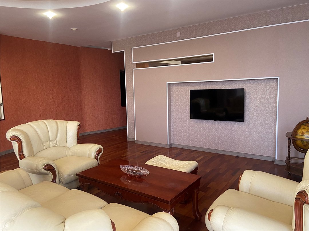 два телевизора, кабельное телевидение, Wi-Fi, телефон, холодильник, светильник, фен, плита для приготовления пищи, микроволновая печь, санузел, дополнительный санузел, халаты, банные полотенца, тапочки, гигиенические средства, косметические средства, двуспальная кровать, две полутораспальные кровати, диван, стулья, шкаф для одежды, вешалки, обеденный стол, зеркало, комод, кухня, обслуживание номеров, информационная карта, меню, чайник, унитаз, раковина, обеденная зона, ковровое покрытие, душ, кулер на этаже, плиточное покрытие, две спальни, кухонная посуда, столовые приборы, туалет, телевизор с плоским экраном, частный двор, без питомцевВ гостиничном номере