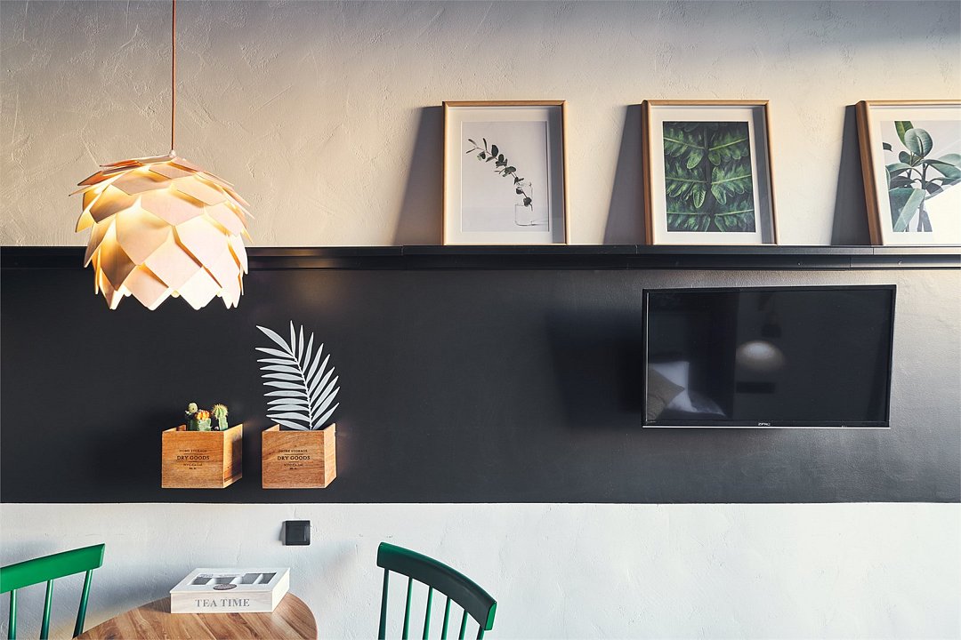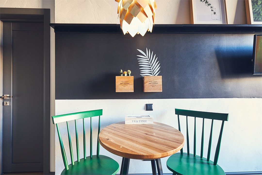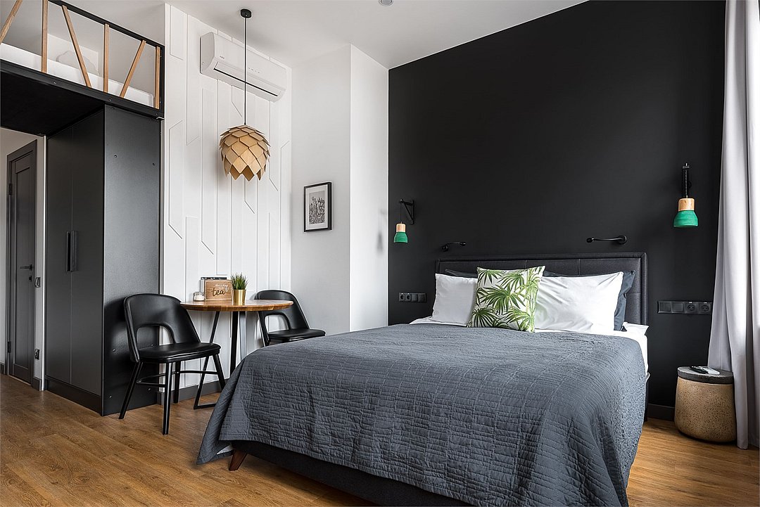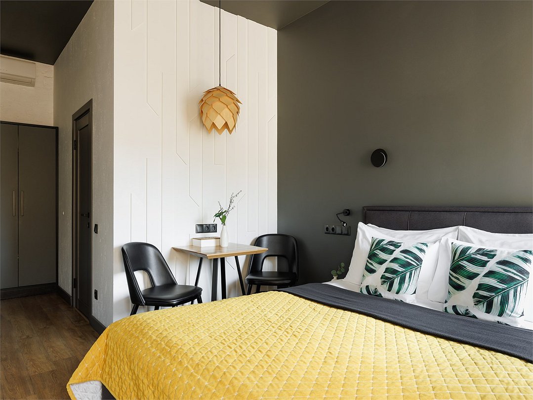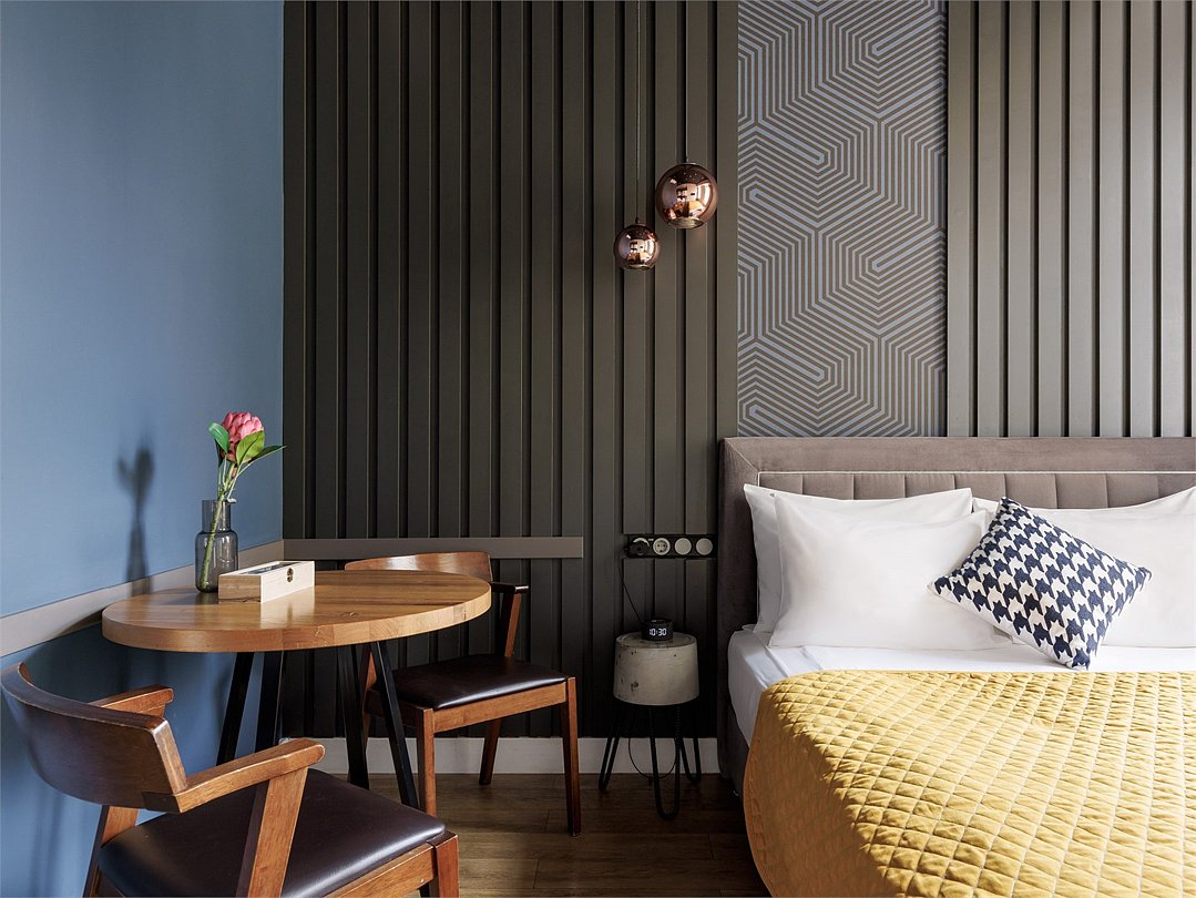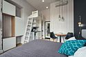 Всего в отеле 38 номеров категорий Улучшенный, Студии и Апартаменты. Все они рассчитаны на 2-4 постояльца. Комнаты имеют интересный дизайн, в спальнях имеются вторые этажи для дополнительной кровати с лестницей, мини-кухни, обеденные столы и стулья, утюг, электрочайник, микроволновка, холодильник, телевизор, набор посуды для приготовления пищи и чаепития.