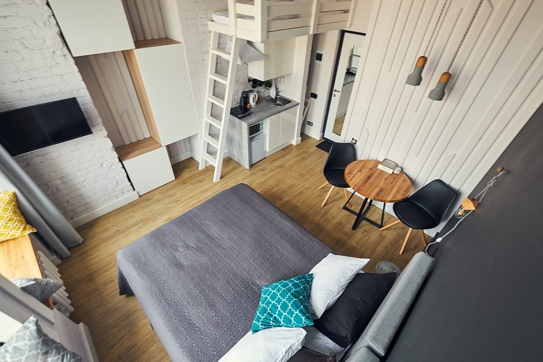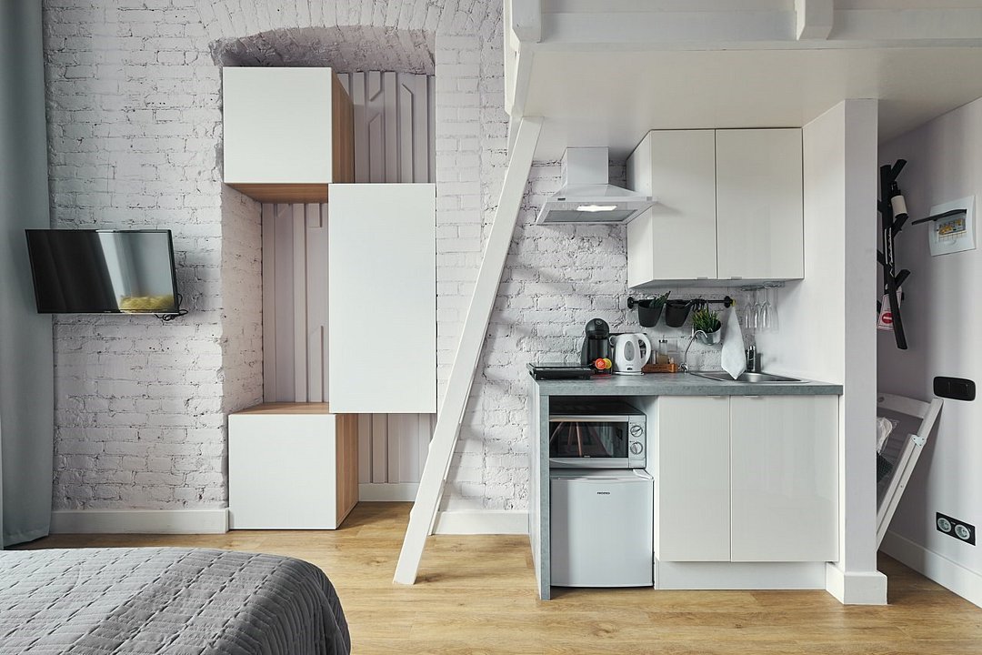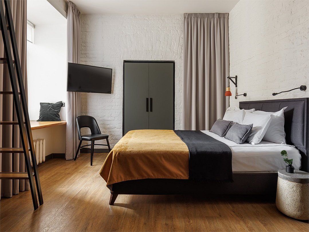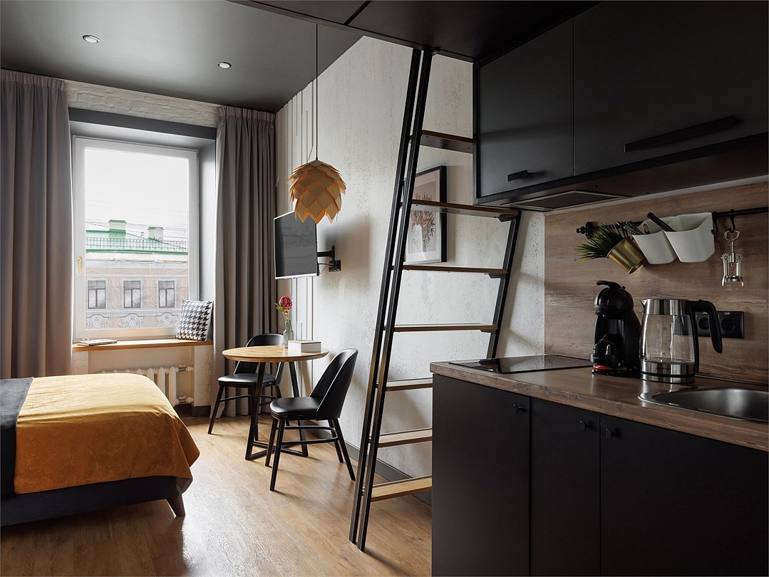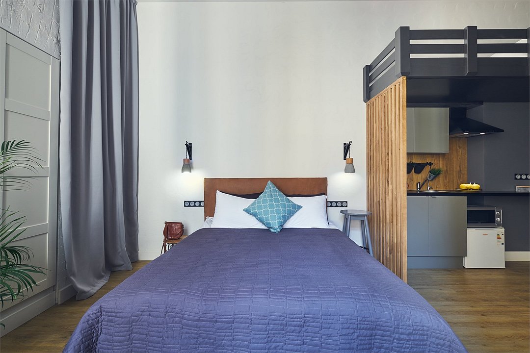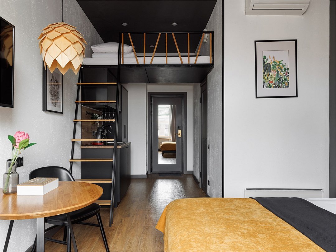Ищете номер, где можно разместиться всей семьей или небольшой компанией? Этот улучшенный номер-студио с видом на город – идеальный выбор! Просторный и светлый, он станет вашим личным убежищем, где каждый почувствует себя как дома. Двуспальная кровать и уютная односпальная кровать на втором уровне – это не просто спальные места, это личное пространство для каждого гостя. Мини-кухня позволит вам приготовить любимые блюда, а кондиционер создаст идеальный микроклимат в любое время года. Представьте: вы просыпаетесь утром, завариваете себе чашечку ароматного чая или кофе и наслаждаетесь тишиной и спокойствием, любуясь видом на Невский проспект. А вечером, после насыщенного дня, вы сможете расслабиться и посмотреть любимый фильм по спутниковому телевидению. Не упустите возможность сделать ваше путешествие еще более комфортным и незабываемым! Забронируйте улучшенный номер-студио с видом на город и наслаждайтесь всеми преимуществами просторного и уютного номера.Услуги и удобства