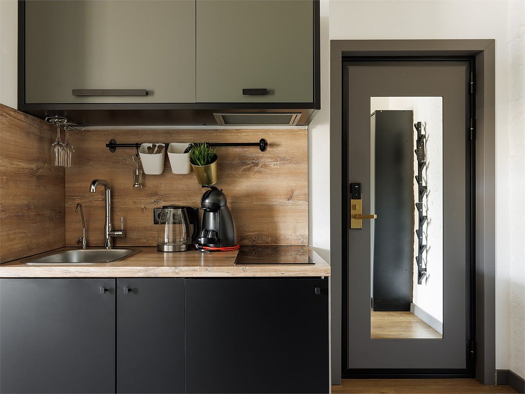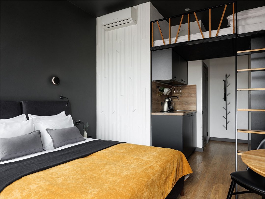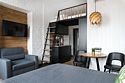Семейный отдых с комфортом и стилем. Забудьте о тесных гостиничных номерах! В наших апартаментах "Делюкс" площадью от 21 до 25 квадратных метров найдется место для всей семьи. Продуманное пространство, удобная мебель и стильный интерьер создают атмосферу уюта и комфорта. Просторная двуспальная кровать и уютная односпальная кровать на втором уровне – это не просто спальные места, это личное пространство для каждого. А раскладное кресло позволит разместить еще одного гостя. Мини-кухня, оборудованная всем необходимым, позволит вам приготовить любимые блюда для своих близких. Забудьте о походах в рестораны, когда можно насладиться домашней едой в уютной обстановке своих апартаментов. Не упустите возможность сделать ваш семейный отдых незабываемым! Забронируйте апартаменты "Делюкс" и наслаждайтесь комфортом и удобством, которые сделают ваше пребывание в нашем отеле по-настоящему особенным.Услуги и удобства