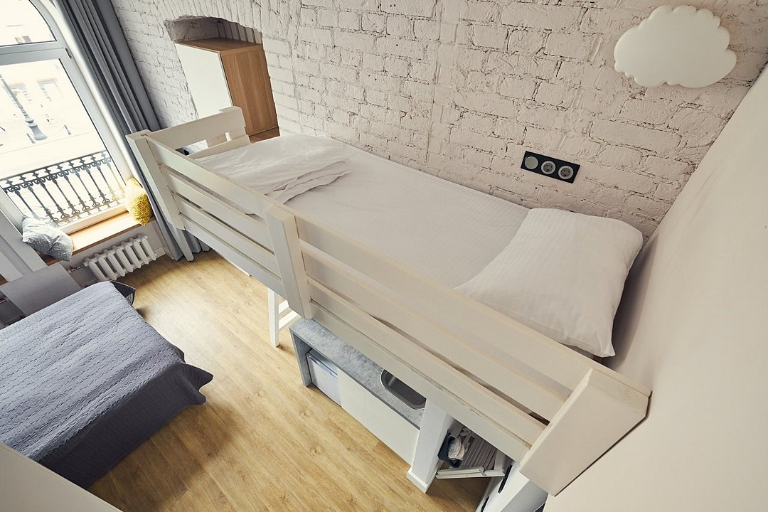 Кровать на втором уровне покорила сердце не только ребёнка, но и взрослого.