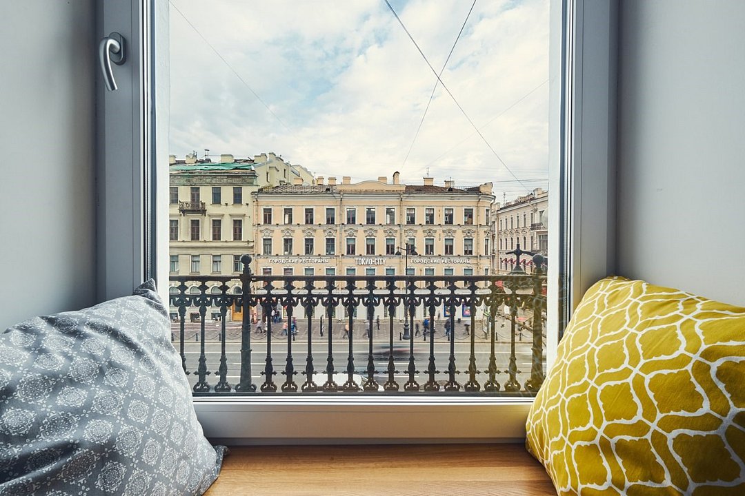 А я исполнила давнее желание, пожить с видом на Невский! Кстатит шумоизоояция хорошая, машины не мешают, соседей не слышали.