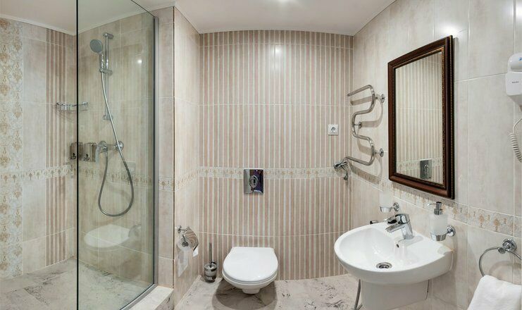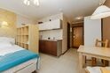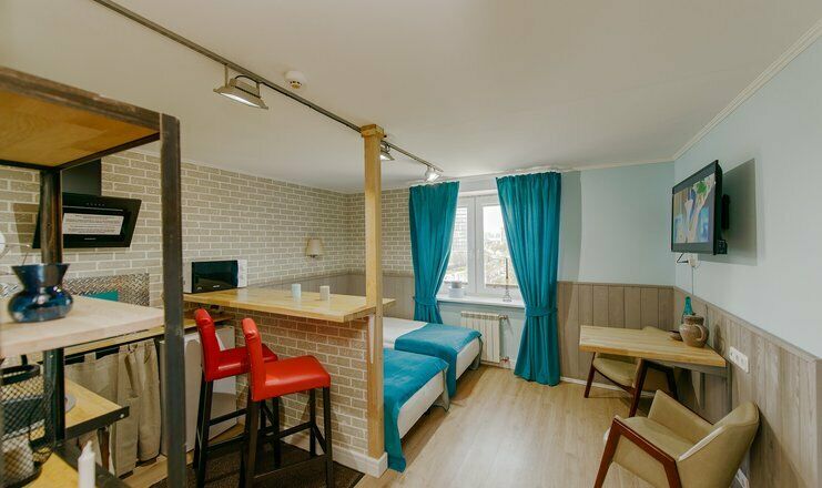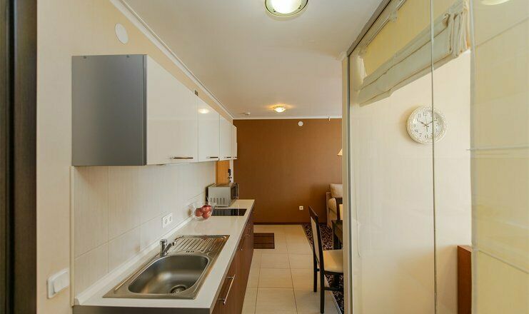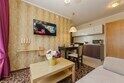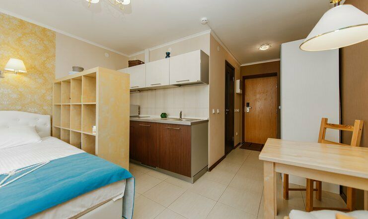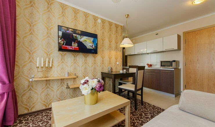 В некоторых номерах есть отдельная кухня. Отличаются они по площади и количеству комнат, а также виду из окон. К каждому помещению подведен беспроводной Интернет, работает кабельное ТВ. В уборной установлен душ или ванна.