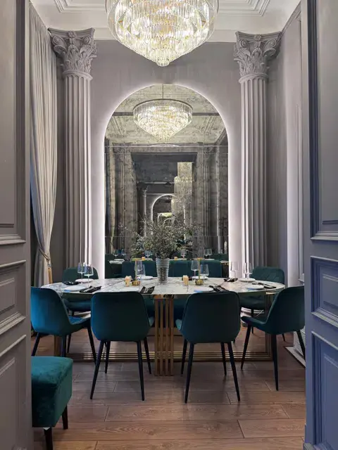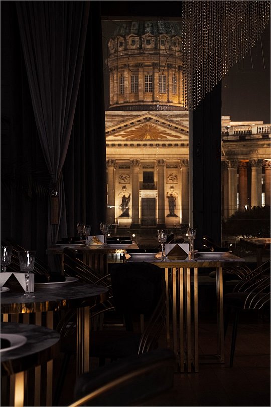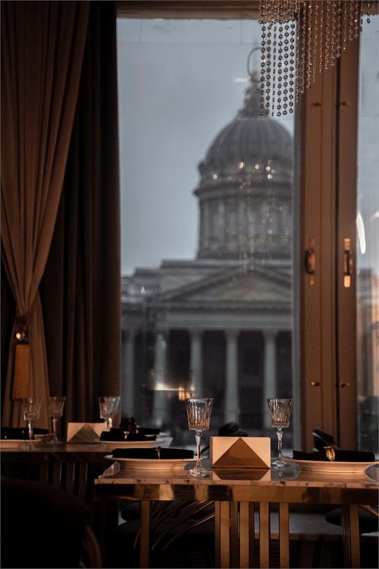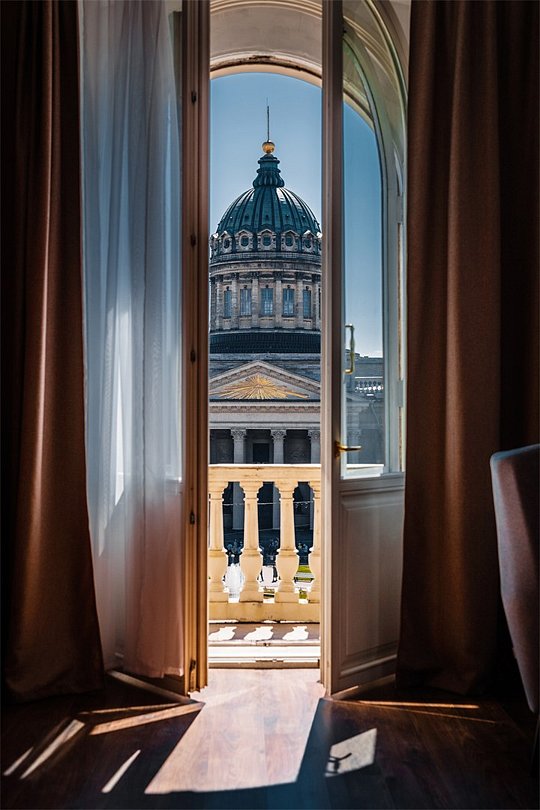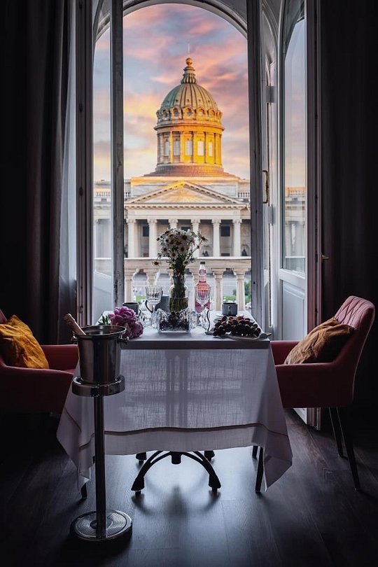 Самый роскошный номер в отеле - Президентский Люкс площадью 170м² . Покоряет сердца неповторимым видом на архитектурный ансамбль Казанского собора и Невский проспект. Такого потрясающего, головокружительного вида на Казанский собор нет более ни в одном отеле города! В люксе отлично сочетаются классический стиль интерьера и современный комфорт. Щедрая и роскошная планировка позволила разместить здесь рабочий кабинет, 2 спальни с кроватью «king size», две ванные комнаты. Для приема посетителей предусмотрены: • Просторная гостиная с камином, уютным диваном и креслами. • Столовая на восемь персон • Переговорная комната с камином и балконом с изумительными видами на уходящую вдаль Невскую перспективу. Люкс оборудован всем необходимым для непревзойденного комфорта во время отдыха и работы: • Постельные принадлежности премиум класса с бескомпромиссным качеством. • Роскошные хрустальные люстры украшают номера и ванные комнаты. • Портьеры с функцией Blackout на всех окнах люкса. • Две больших ванных комнаты с душем увеличенного размера и джакузи на двоих человек. • Полный спектр косметических принадлежностей премиум качества. За большим обеденным столом в парадной столовой с панорамными окнами на Казанский Собор и балконом, можно комфортно разместить восемь гостей. Отпраздновать важное событие и погрузится в атмосферу Санкт-Петербурга! Уютная гостиная с мягкими креслами и диваном отлично подходит для дружеского приема. КОМПЛИМЕНТАРНЫЕ УСЛУГИ: • Панорамный вид на архитектурный ансамбль Казанского собора • Мини-бар с алкогольными и безалкогольными напитками, снеками • Высокоскоростной доступ в Интернет • Консьерж сервис 24 часа. • Индивидуальный менеджерУслуги и удобства