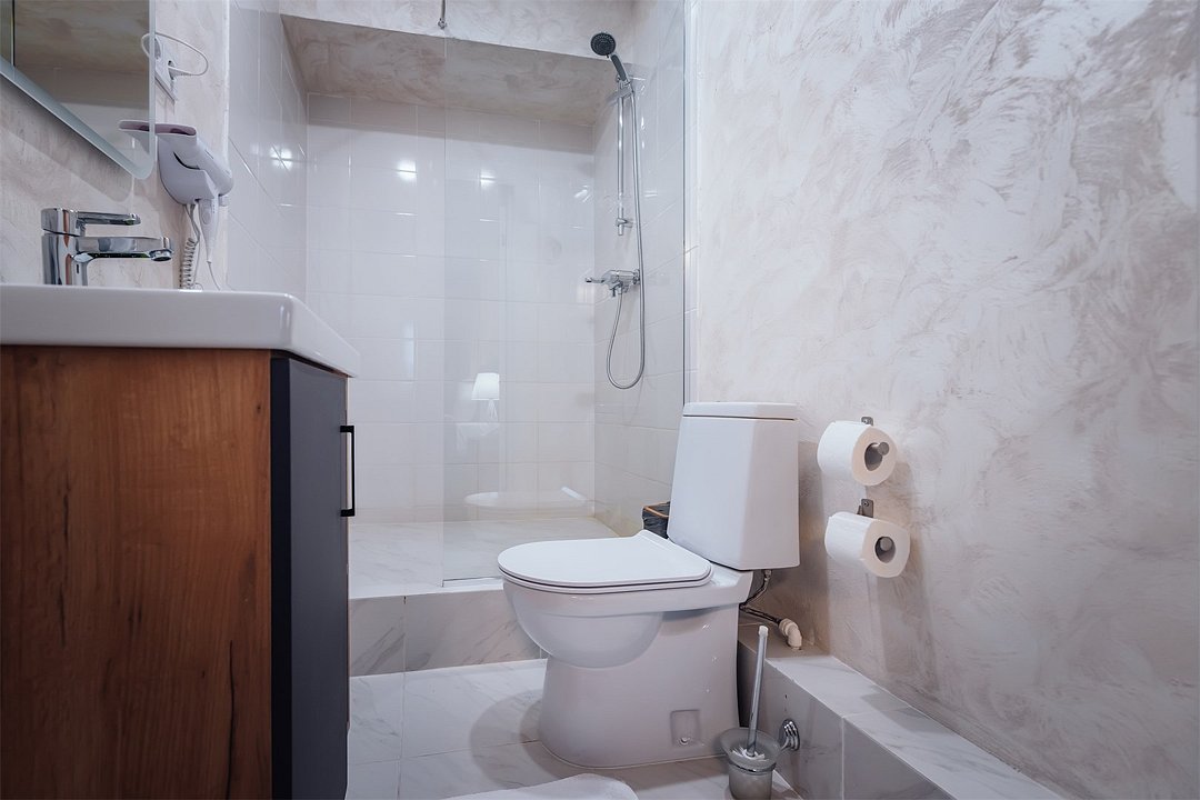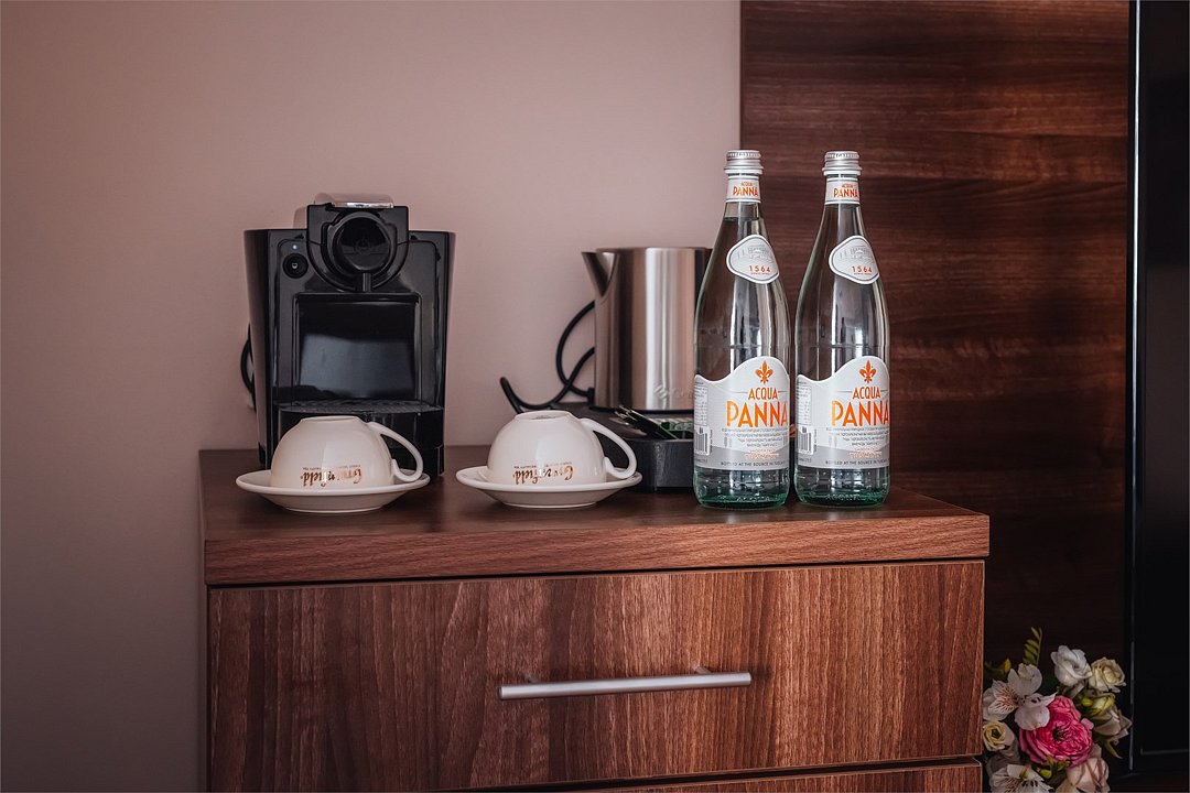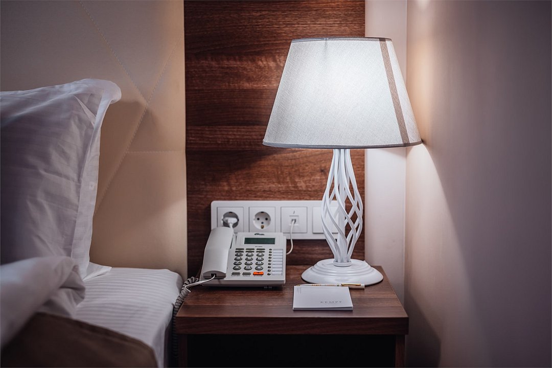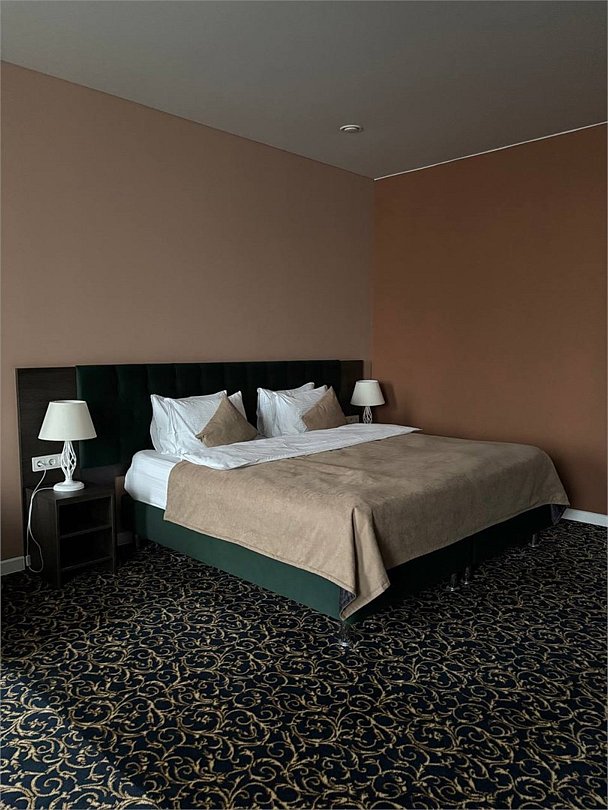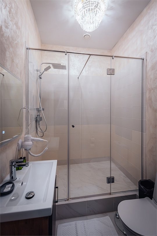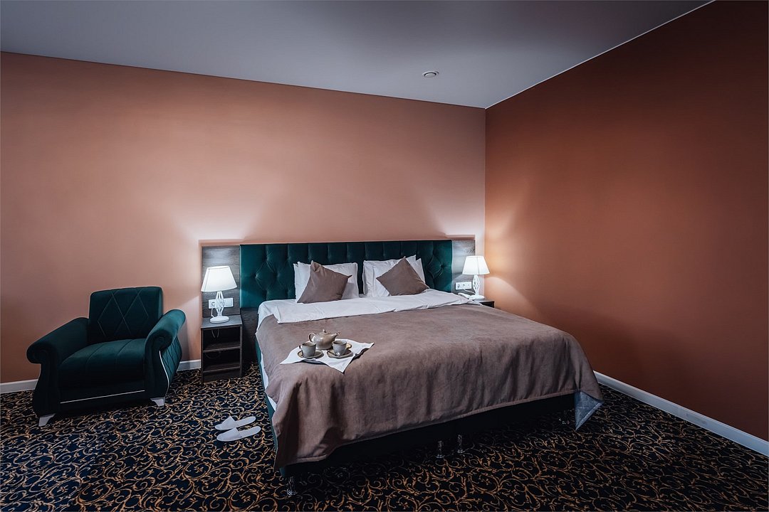 спутниковое телевидение, Wi-Fi, IP-телефон, кондиционер, система климат-контроля, настольные лампы, фен, весы, электронные замки, утюг, ванная комната, банные принадлежности, банные полотенца, тапочки, гигиенические средства, косметические средства, кровать «King size», гладильная доска, тумбы, стулья, шкаф для одежды, вешалки, журнальный столик, письменный стол, багажная тумба, зеркало, комод, мини-бар, чайный набор, сейф, чайник, унитаз, раковина, питьевая вода, отопление, душ, вид на город, вид во двор, паркет, высокие потолки, стаканы, кофейный столик, стул, стол, туалет, сплит-система, мини-холодильник, шкаф-купе, телевизор со Smart TV, номер для некурящих, онлайн-регистрация до заезда, чайная станция, уборка номера, бутилированная водаВ номере