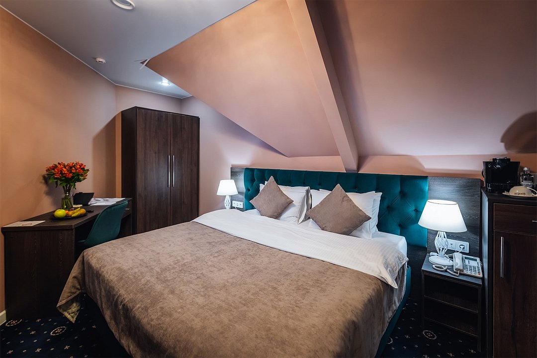 Номера на мансардном этаже отеля дают ощущение простора и романтического уюта, идеально подходят для размещения 1-2 человек. Площадь номера варьируется от 16 до 20 кв.м. Мансардные окна номера выходят во внутренний двор здания - архитектурная особенность Санкт-Петербурга. В каждом номере имеется спальная зона с удобной двуспальной кроватью с высоким ортопедическим матрасом, также есть номера с двумя односпальными кроватями. Номера оснащены: плазменным телевизором, wi-fi, кондиционером, сейфом, мини-холодильником, чайной станцией, утюгом и гладильной доской, индивидуальной ванной комнатой со всеми необходимыми гигиеническими принадлежностями.Услуги и удобства
