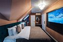 Wi-Fi, холодильник, кондиционер, настольные лампы, фен, весы, электронные замки, утюг, душевая кабина, халаты, банные полотенца, тапочки, косметические средства, кровать «Queen size», две полутораспальные кровати, гладильная доска, тумбы, шкаф для одежды, зеркало, письменные принадлежности, чайный набор, обслуживание номеров, информационная карта, меню, сейф, чайник, ковровое покрытие, отопление, душ, стаканы, стул, туалет, внутренний телефон, мини-холодильник, мансардные окна, телевизор со Smart TV, номер для некурящих, чайная станция, уборка номера, вешалки-плечики, бутилированная водаВ номере