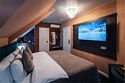 Wi-Fi, кондиционер, светильник, настольные лампы, фен, весы, электронные замки, утюг, душевая кабина, халаты, банные полотенца, тапочки, косметические средства, кровать «Queen size», две полутораспальные кровати, гладильная доска, тумбы, шкаф для одежды, зеркало, письменные принадлежности, чайный набор, обслуживание номеров, информационная карта, меню, сейф, чайник, ковровое покрытие, отопление, душ, стаканы, стул, туалет, внутренний телефон, мини-холодильник, мансардные окна, телевизор со Smart TV, номер для некурящих, чайная станция, уборка номера, вешалки-плечики, бутилированная водаВ номере