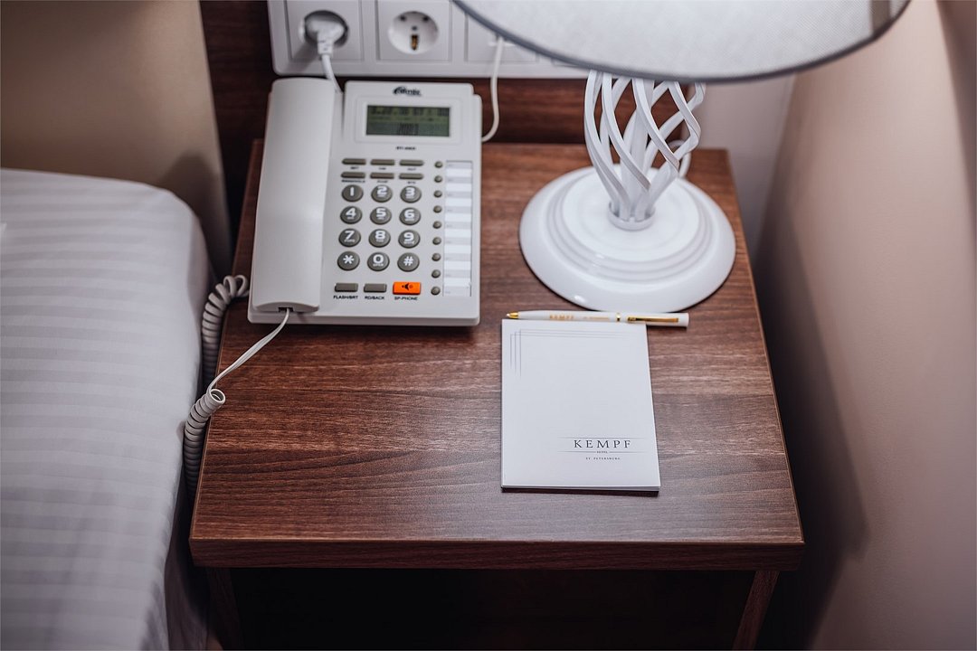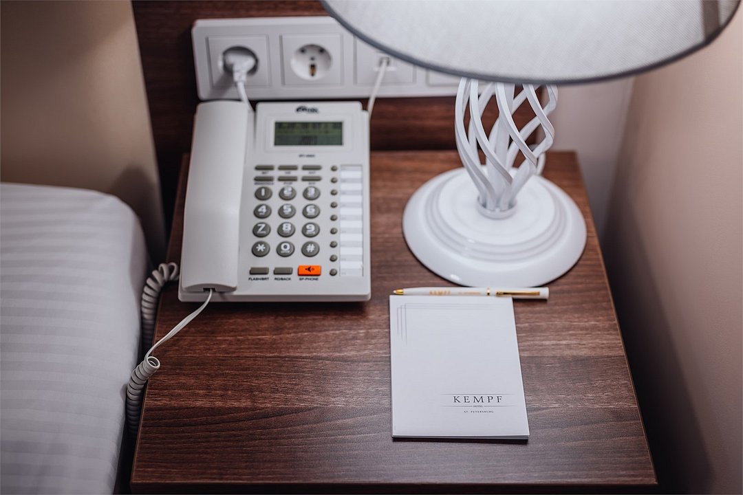Просторные и светлые номера Люкс сочетают в себе изысканный интерьер и новейшие современные технологии, а великолепный фронтальный вид на Казанский собор и панорамные окна сделают Ваш отдых незабываемым! Классический интерьер и нежные оттенки, используемые в декорировании номеров категории Люкс отеля Kempf Nevsky, дополняют уютную атмосферу. Благородные материалы и высокие потолки создают идеальную композицию, которую завершает кровать размером king-size (при необходимости, номер может быть оборудован двумя полутороспальными кроватями). Номерах Люкс просторная ванная комната с душем увеличенного размера и красивой люстрой не оставит равнодушным даже самого взыскательного гостя. А премиальная линейка гостевых косметических принадлежностей сделает пребывание в отеле Kempf Nevsky еще более изысканным. Расположение номеров Люкс идеально подходит для организации семейного проживания за счет возможности объединения со смежными комнатами.Услуги и удобства