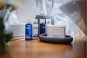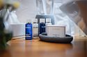 - набор косметики, комплект белоснежных махровых полотенец, тапочки и халат