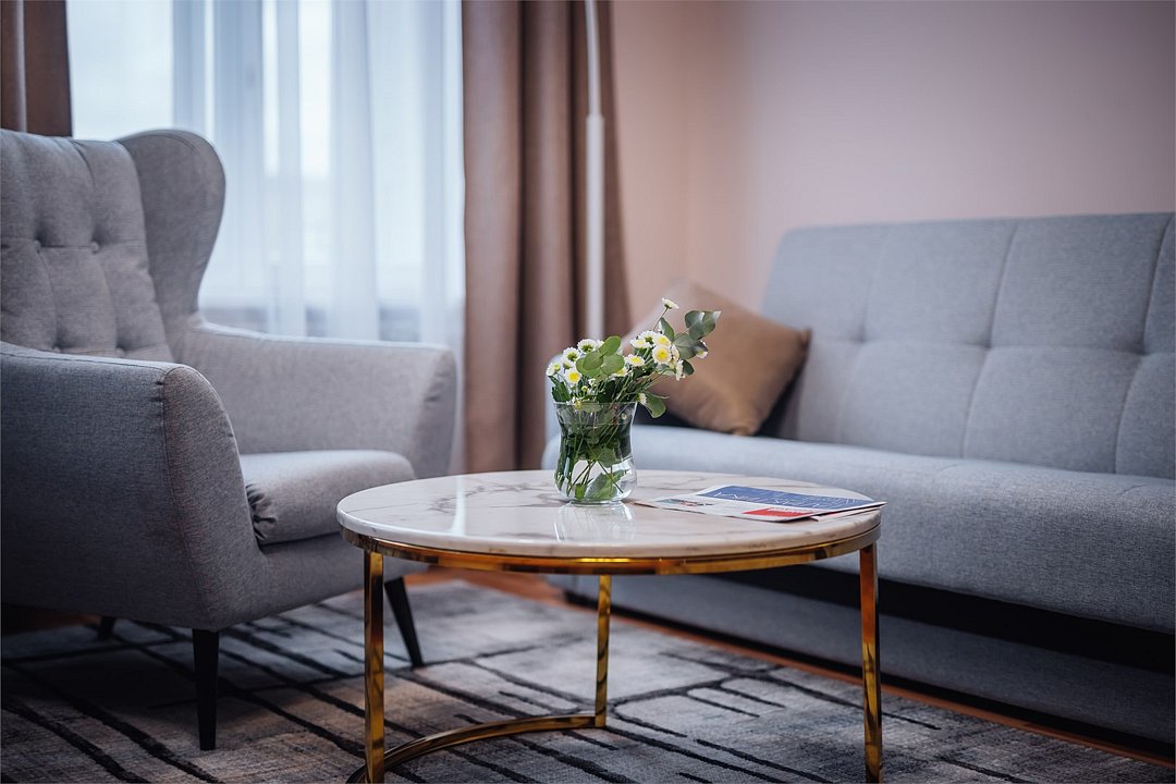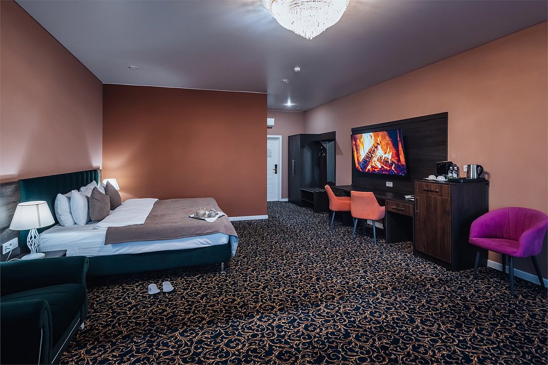 Комфортабельный двухкомнатный номер площадью 45 кв. м подойдет для размещения 4-6 гостей с детьми. Из окон номера открывается вид на историческую пешеходную улицу города - ул. Малая Конюшенная! В номере: 2 изолированные спальни, 2 санузла, общий холл. Двуспальная кровать (King size) или две полутороспальные кровати в каждой комнате, высокий ортопедический матрас, комфортабельная мебель, шкаф для хранения одежды, плазменный телевизор, многоканальный телефон, wi-fi, кондиционер, сейф, мини-бар, чайная станция, утюг и гладильная доска. Дополнительное спальное место в каждой комнате, позволяющие с комфортом разместиться в номере 6 гостям , детская кровать –манеж предоставляется по запросу.Услуги и удобства