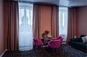 Великолепный номер "Люкс" с панорамными окнами и балконом. Вид на пешеходную зону улицы Малая Конюшенная позволит Вам насладиться красотами города не выходя из отеля! Площадь номера 55- 60 кв. м, возможно как двухместное размещение, так и семейное проживание (есть возможность поставить дополнительное спальное место и/или детскую кроватку). В номере есть все необходимое для комфортного проживания: двуспальная кровать размером King size, мягкое кресло и двухместный диванчик, телевизор, письменный стол для работы, настольная лампа, торшеры. Великолепная ванная комната с итальянской сантехникой, где в полном распоряжении гостей – фен, халаты, полотенца, тапочки, гели и шампуни премиум класса .Услуги и удобства