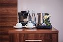 спутниковое телевидение, Wi-Fi, система климат-контроля, светильник, фен, весы, будильник, электронные замки, утюг, ванная комната, банные принадлежности, халаты, банные полотенца, тапочки, косметические средства, гладильная доска, кресла, шкаф для одежды, журнальный столик, письменный стол, багажная тумба, зеркало, комод, две комнаты, мини-бар, письменные принадлежности, чайный набор, обслуживание номеров, сейф, минеральная вода, чайник, унитаз, раковина, питьевая вода, обеденная зона, гостиная зона, отопление, душ, вид на город, кресло, две спальни, паркет, ламинат, высокие потолки, две кровати «King size», стаканы, кофейный столик, стул, тумба, туалет, сплит-система, панорамные окна, раскладной диван, внутренний телефон, мини-холодильник, телевизор со Smart TV, номер для некурящих, онлайн-регистрация до заезда, два дивана-кровати, чайная станцияВ номере