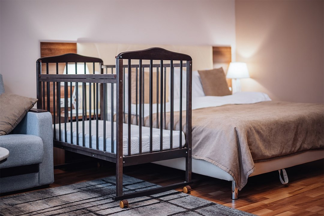 - детская кроватка для детей до 3 лет (по запросу, при наличии) и размещение детей до 7 лет вместе с родителями на кровати - бесплатно
