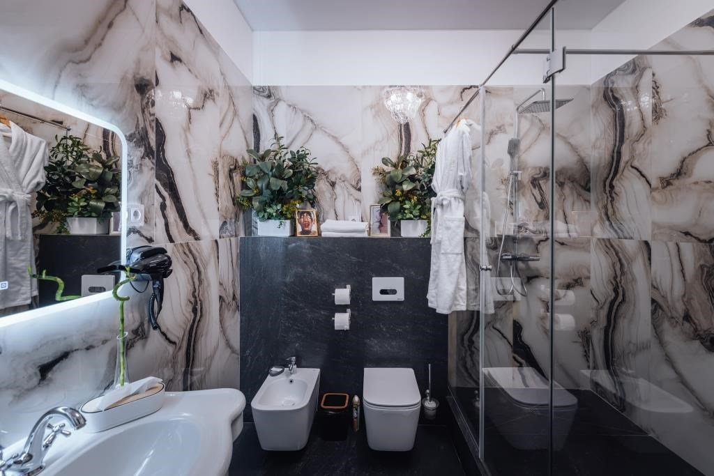 Wi-Fi, интернет, холодильник, кондиционер, светильник, настольные лампы, фен, весы, электронные замки, утюг, ванная комната, душевая кабина, санузел, банные принадлежности, халаты, банные полотенца, тапочки, гигиенические средства, косметические средства, кровать «King size», гладильная доска, ортопедический матрас, тумбы, стулья, шкаф для одежды, вешалки, письменный стол, багажная тумба, зеркало, комод, мебельный гарнитур, письменные принадлежности, обслуживание номеров, сейф, унитаз, раковина, питьевая вода, душ, вид на город, три комнаты, три спальни, высокие потолки, две кровати «King size», три ванные комнаты, стол, туалетные средства, туалет, диван-кровать, раскладной диван, внутренний телефон, мини-холодильник, телевизор со Smart TV, номер для некурящих, три телевизора, рабочий стол, два дивана-кровати, чайная станцияВ номере