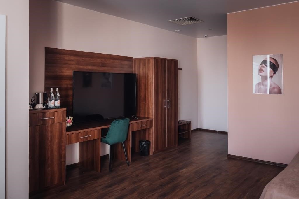 спутниковое телевидение, Wi-Fi, IP-телефон, кондиционер, система климат-контроля, настольные лампы, фен, весы, электронные замки, утюг, ванная комната, банные принадлежности, банные полотенца, тапочки, гигиенические средства, косметические средства, кровать «King size», гладильная доска, тумбы, стулья, шкаф для одежды, вешалки, журнальный столик, письменный стол, багажная тумба, зеркало, комод, мини-бар, чайный набор, сейф, чайник, унитаз, раковина, питьевая вода, отопление, душ, вид на город, вид во двор, паркет, высокие потолки, стаканы, кофейный столик, стул, стол, туалет, сплит-система, мини-холодильник, шкаф-купе, телевизор со Smart TV, номер для некурящих, онлайн-регистрация до заезда, чайная станция, уборка номера, бутилированная водаВ гостиничном номере