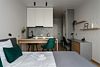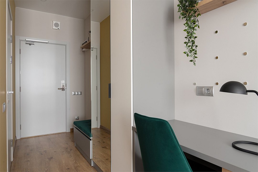 Оплачиваются дополнительно на заезде: административные расходы, связанные с регистрацией иностранных граждан, в режиме on-line, с использованием рекомендуемого Правительством Санкт-Петербурга программного обеспечения, гарантирующего полную защиту персональных данных иностранных граждан, составляют 350 рублей за каждую операцию, НДС не облагается Просторные апартаменты категории «Студио» сочетают в себе всё необходимое для комфортабельного отдыха, продуктивной работы и приятного времяпрепровождения в обеденной зоне с отдельным столом. В апартаментах установлен телевизор с функцией Smart TV, с помощью которой Вы всегда сможете найти желаемый контент, а для отдыха с максимальным комфортом одна большая кровать оборудована профессиональным матрасом. В ванной комнате есть всё необходимое для приятного проживания – встроенная душевая кабина, стиральная машина, гигиенический душ, электрический полотенцесушитель, зеркало с удобной подсветкой, размещенное над раковиной. Эстетичные и светлые апартаменты со стильными цветовыми акцентами порадуют комфортным зонированием и удобной функциональностью.Услуги и удобства