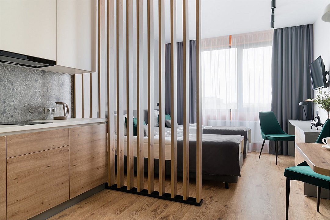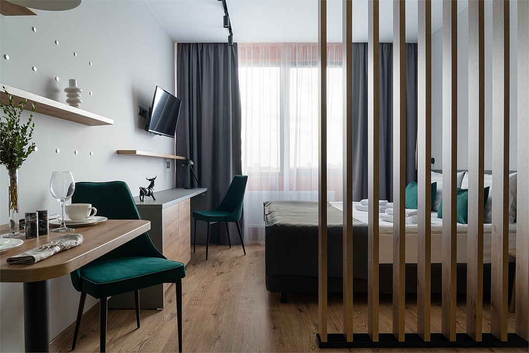 Оплачиваются дополнительно на заезде: административные расходы, связанные с регистрацией иностранных граждан, в режиме on-line, с использованием рекомендуемого Правительством Санкт-Петербурга программного обеспечения, гарантирующего полную защиту персональных данных иностранных граждан, составляют 350 рублей за каждую операцию, НДС не облагается Просторные апартаменты категории «Студио» сочетают в себе всё необходимое для комфортабельного отдыха, продуктивной работы и приятного времяпрепровождения в обеденной зоне с отдельным столом. В апартаментах установлен телевизор с функцией Smart TV, с помощью которой Вы всегда сможете найти желаемый контент, а для отдыха с максимальным комфортом две раздельные кровати оборудованы профессиональными матрасами. В ванной комнате есть всё необходимое для приятного проживания – встроенная душевая кабина, стиральная машина, гигиенический душ, электрический полотенцесушитель, зеркало с удобной подсветкой, размещенное над раковиной. Эстетичные и светлые апартаменты со стильными цветовыми акцентами порадуют комфортным зонированием и удобной функциональностью.Услуги и удобства